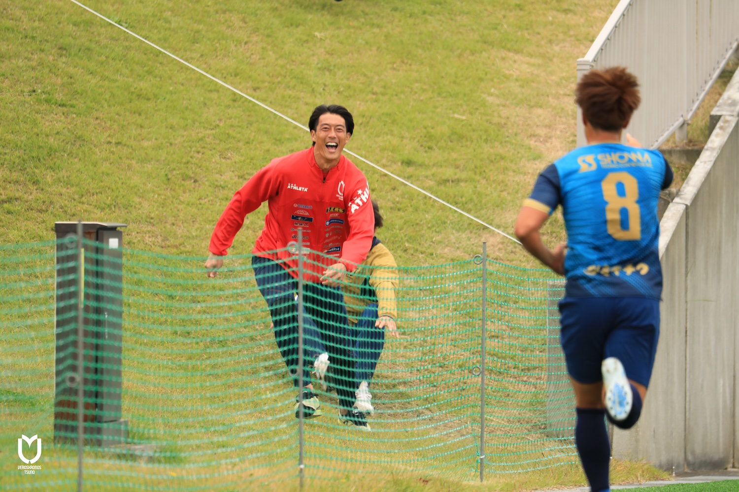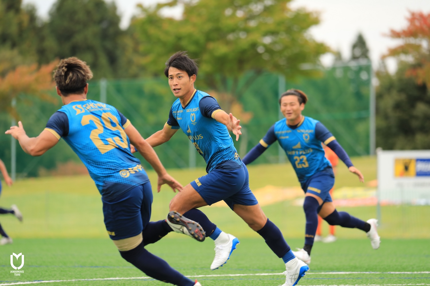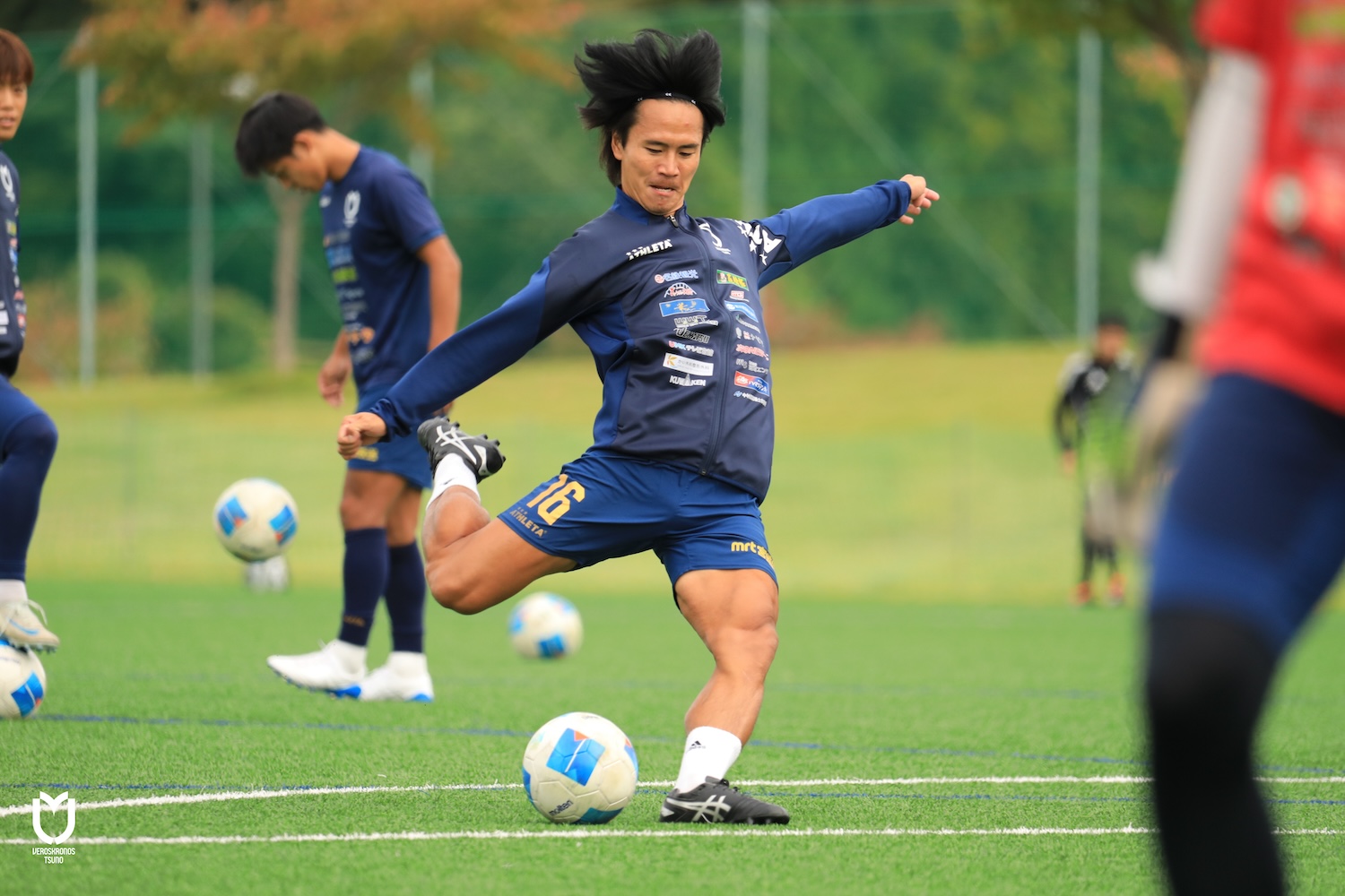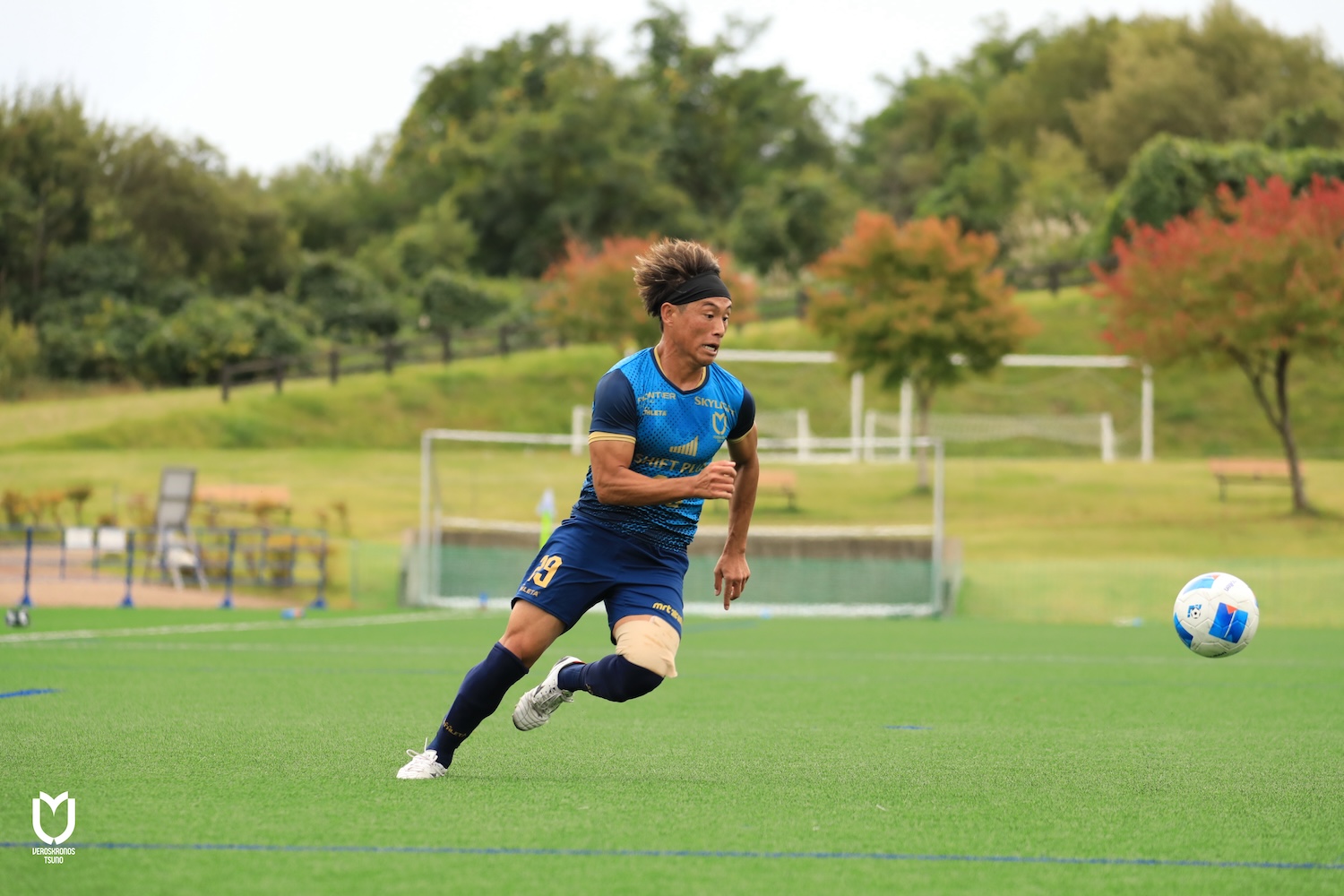 再びボール支配率で優位に立つと、後方からボランチの山内彰選手、永吉広大選手を経由したアタックにもリズムが生まれ、両サイドで巧みにボールを前進させながら敵陣深くまでの侵入を図ると共に、ロングボールを起点として酒井選手やFW松本幹太選手、FW山田雄太選手らを鋭く動かす連続攻撃を次々と仕掛け、上米良選手や山田選手、松本選手に加えDF高橋健選手がシュートを放ち、相手ゴールに詰め寄ります。計6本のシュートは得点にこそ結び付きませんでしたが、持ち味の手数の多さを相手に植え付け、堅守も崩れることなく打たせたシュート0本という上々の内容でハーフタイムに入りました。