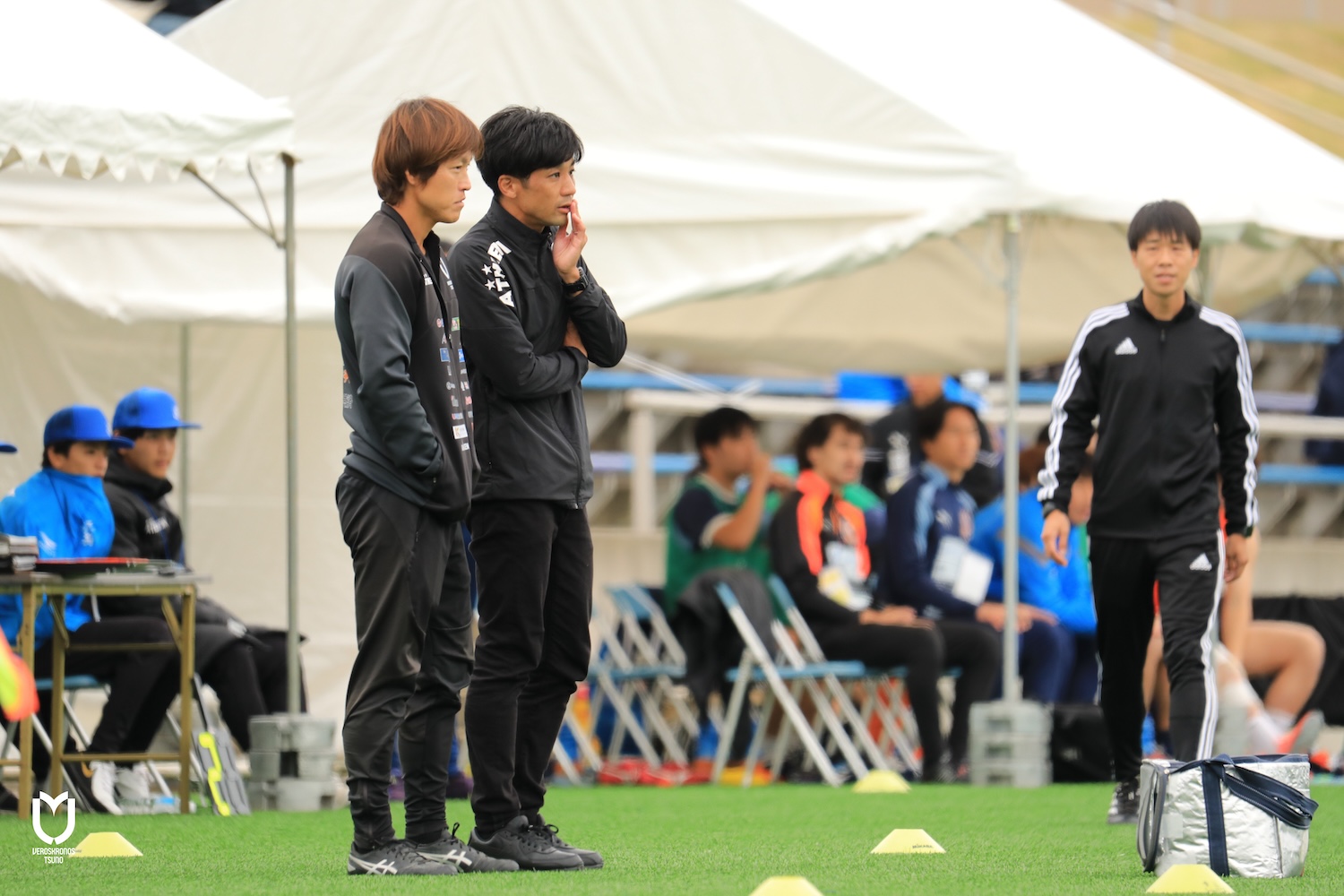 前後半合わせて通常より10分短い80分で延長なしのPK決着という試合ルールの中、先制点が鍵となる迎えた後半40分は前半にも増して果敢に攻め込みました。相手カウンターのリスクに細心の注意を払いながらラインをより高く押し上げ、井上選手が背後を取った酒井選手に繋いで松本選手がシュートを放ち、柳田選手が山田選手に的を絞ったクロスを放り、永吉選手と山内選手が流れるようにボールをコントロールして前線をバリエーション豊かに動かすなど次々と好機を作ります。