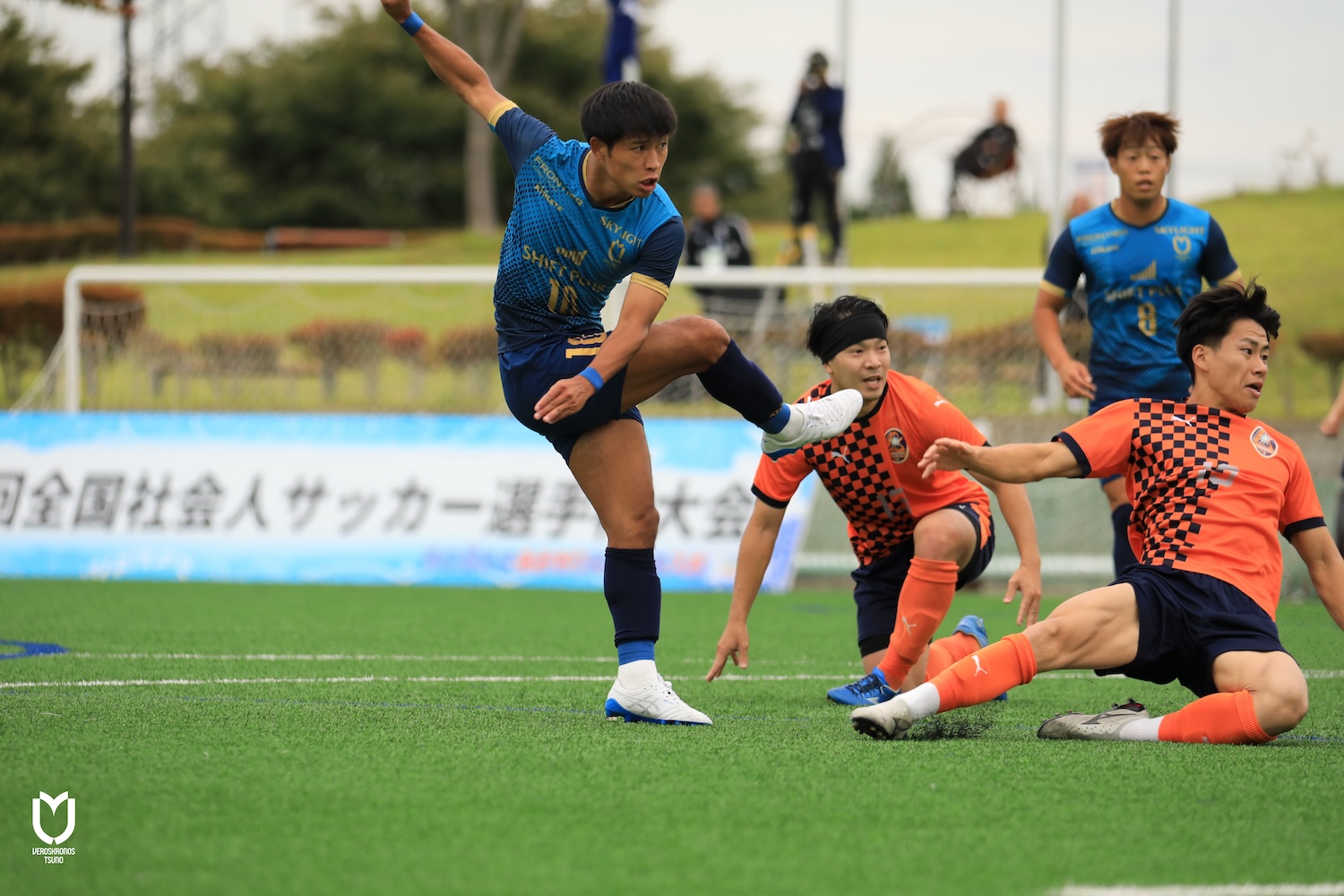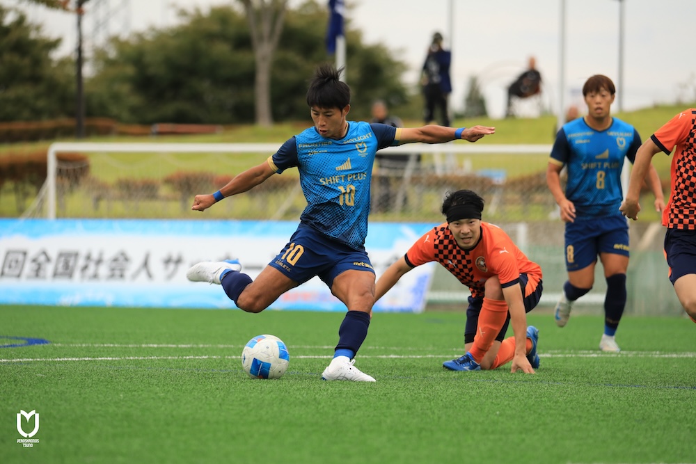 第1日は1回戦16試合を行い、ヴェロスクロノス都農は十和田市高森山総合運動公園人工芝多目的グラウンドでAS.ラランジャ京都(関西)と対戦し、2-0で退け、2回戦に進出しました。今大会は日本フットボールリーグ(JFL)昇格を懸けた全国地域サッカーチャンピオンズリーグ(地域CL)の代表権争いも兼ねており、代表切符獲得に向けて好スタートを切りました。