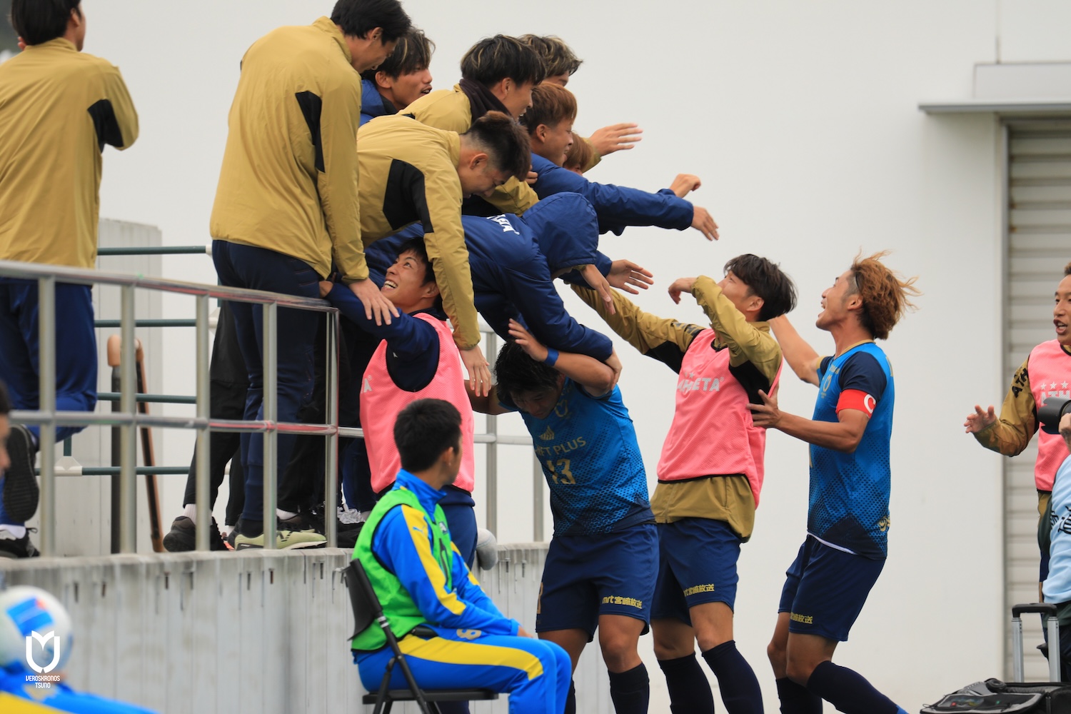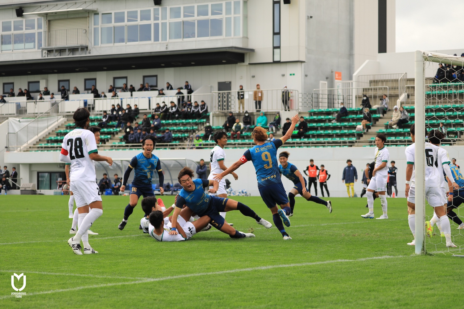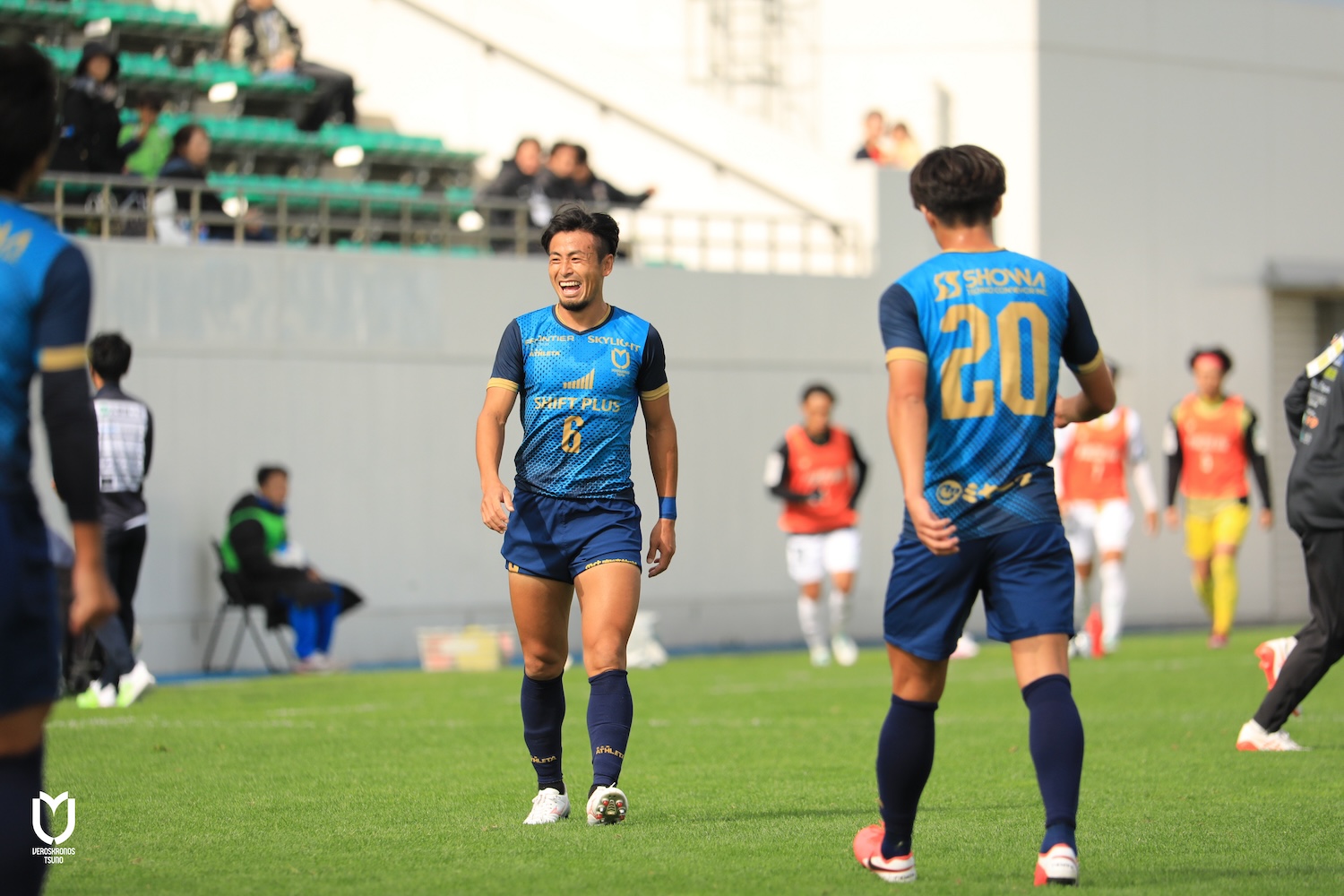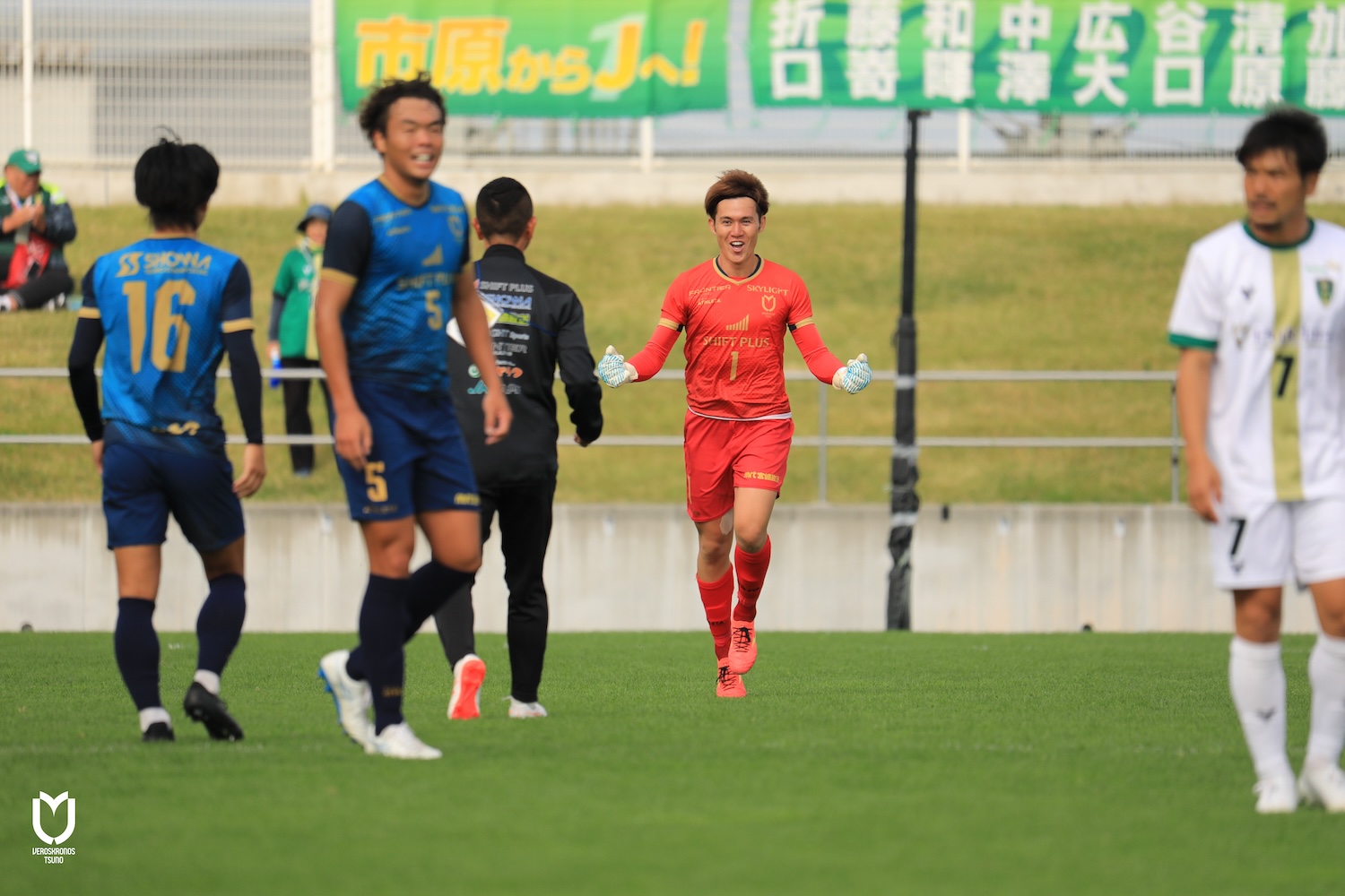 さらに攻守のテンポアップを図り、右サイドを起点とした連続攻撃を仕掛けながら攻守の切り替えも怠らず、残り時間10分を迎えました。相手も前のめりとなり、ロングボール、セットプレーから果敢にゴールを狙いに来ましたが、栁田選手や藤田選手、中村選手や山原選手らが集中力を高く持って次々と前進を食い止め、1本のシュートも打たせずに歓喜のタイムアップに持ち込みました。