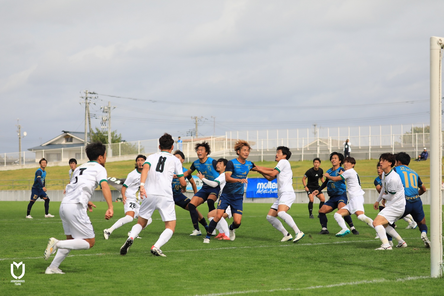 キッカーは不動の柳田選手が務め、右足から繰り出したボールはファーサイドの好位置を捉え、前に出た相手GKとガードを強めたDFの圧に屈することなく井上選手がタイミングを計って勢い良くジャンプし頭で左に流し込み、ふわりと浮いたボールを完全フリーとなった上米良選手が右足で仕留めて貴重な追加点を奪いました。