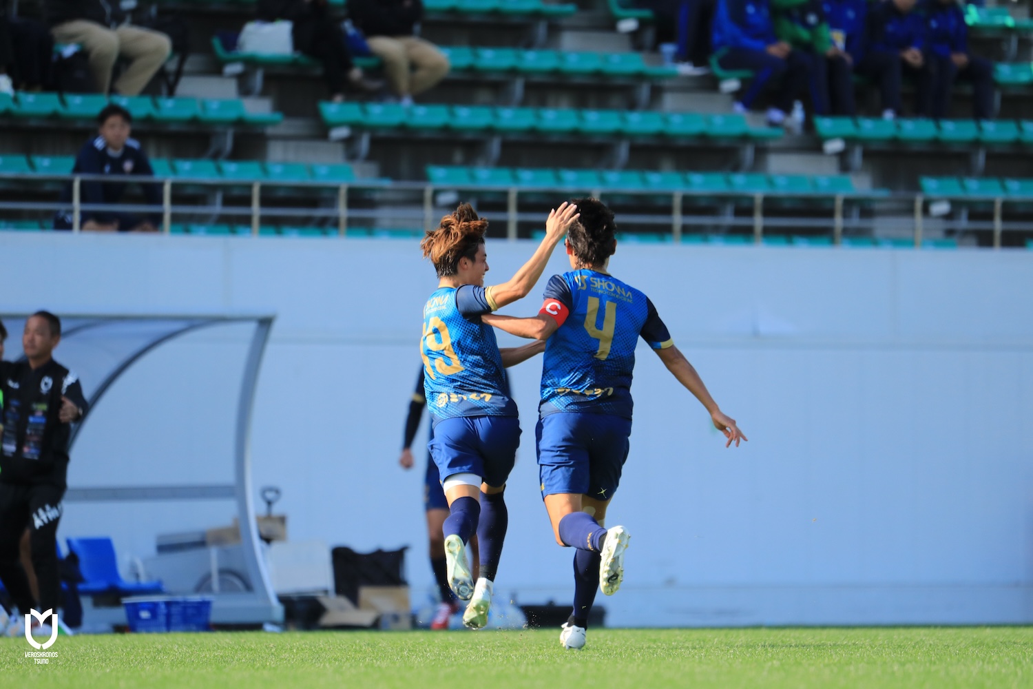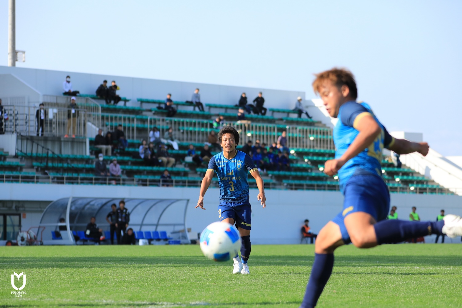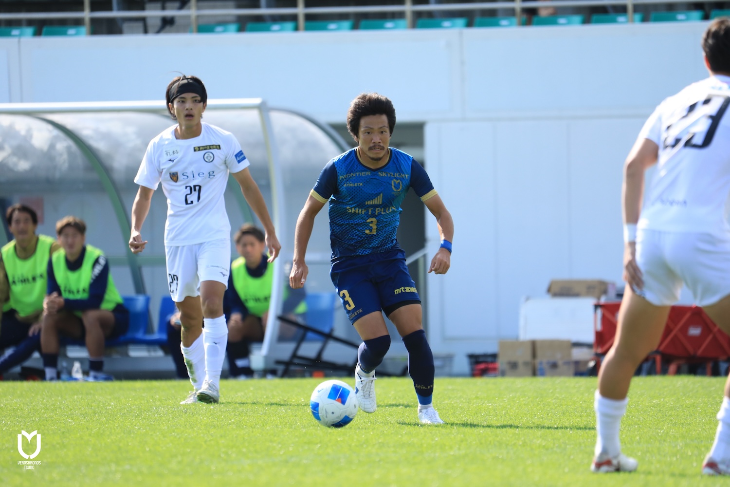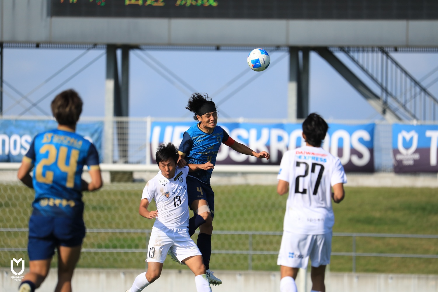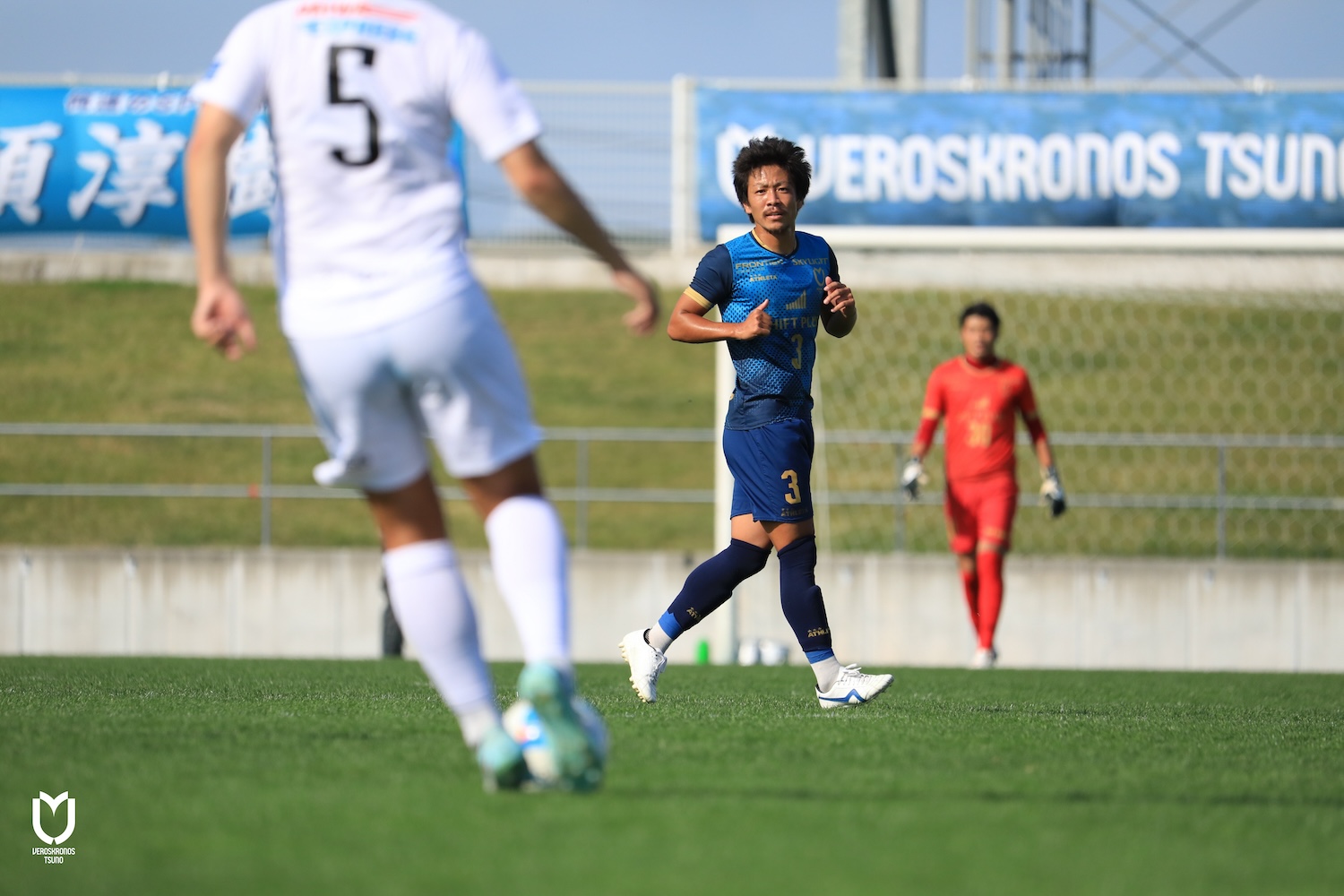 縦を突かれてピンチの場面も次々と訪れましたが、久野選手や武田選手、GK浅井大地選手らが懸命に踏ん張ってゴールを守り、終了間際の相手連続攻撃の場面ではロングスローから枠を捉えられたシュートを五領選手が足を伸ばして食い止めるなど、組織となったディフェンスを徹底してリードを保ったまま折り返しました。