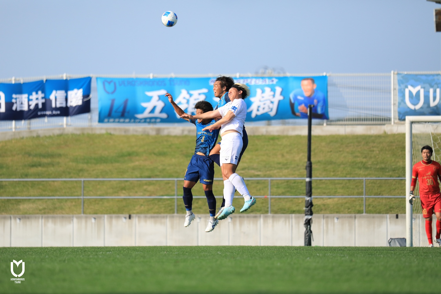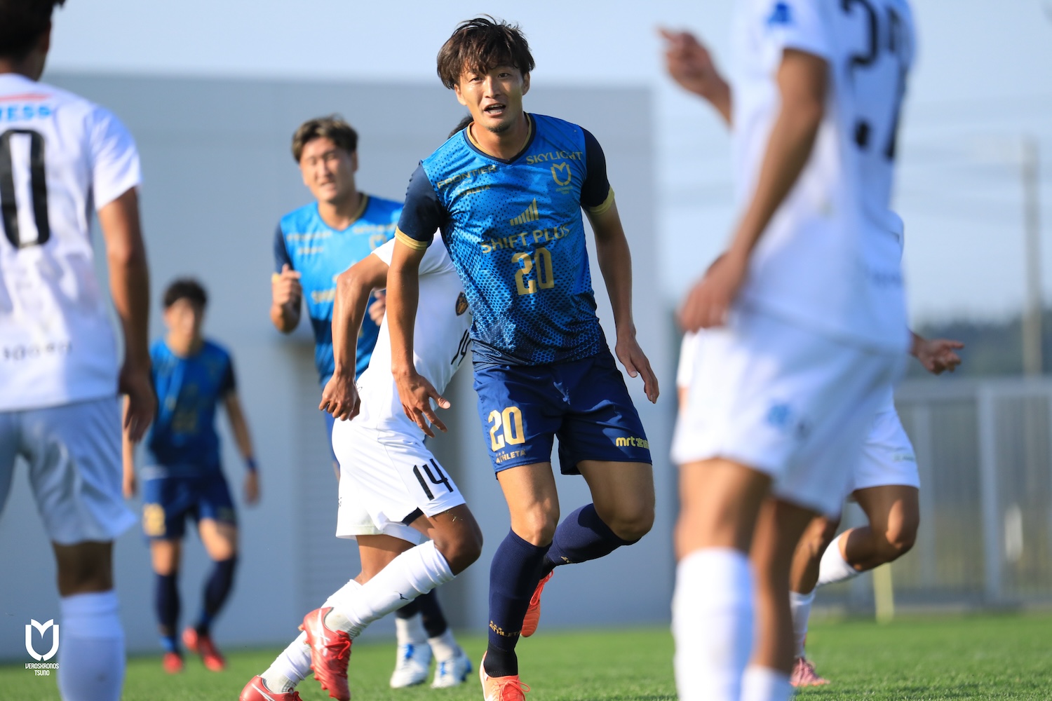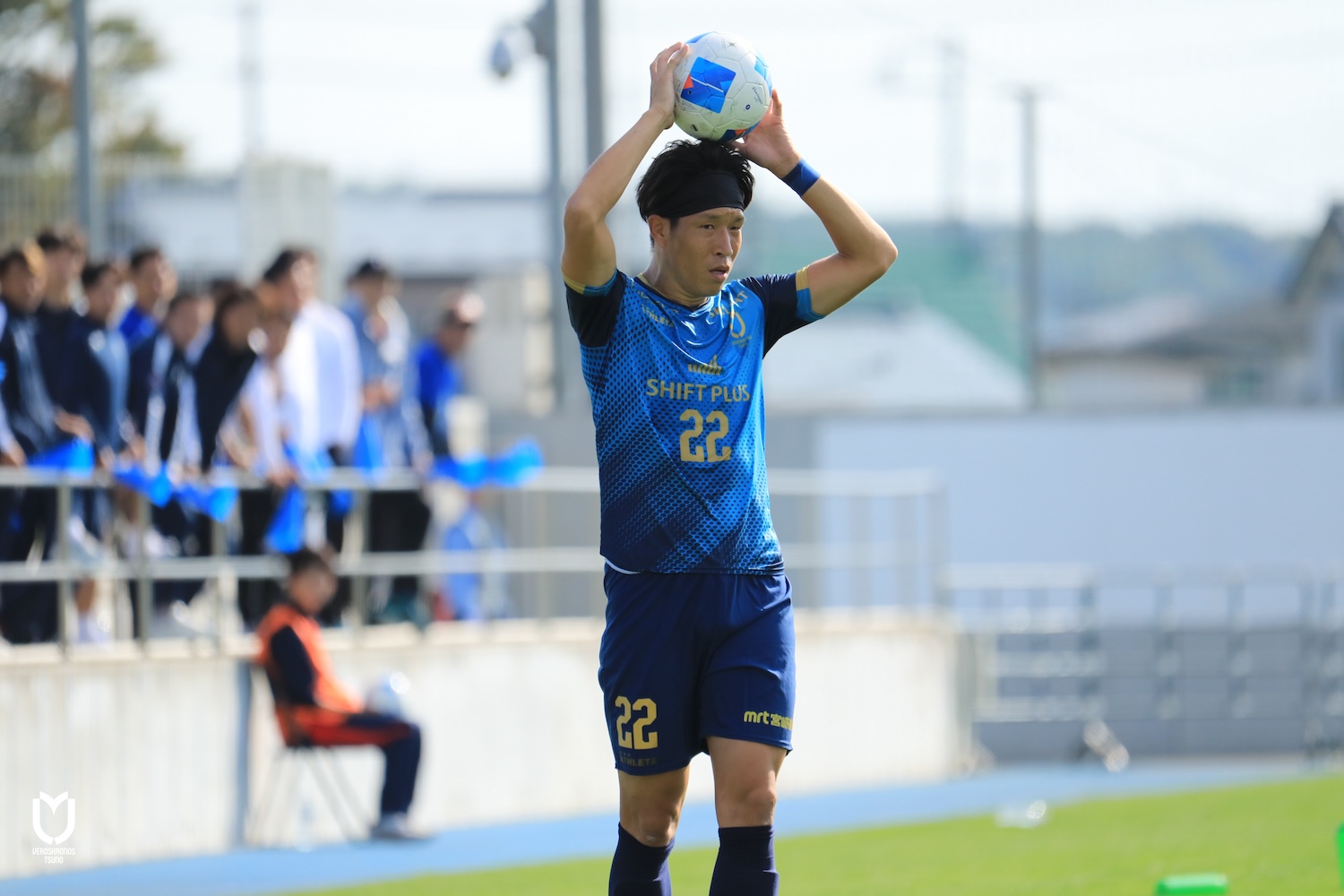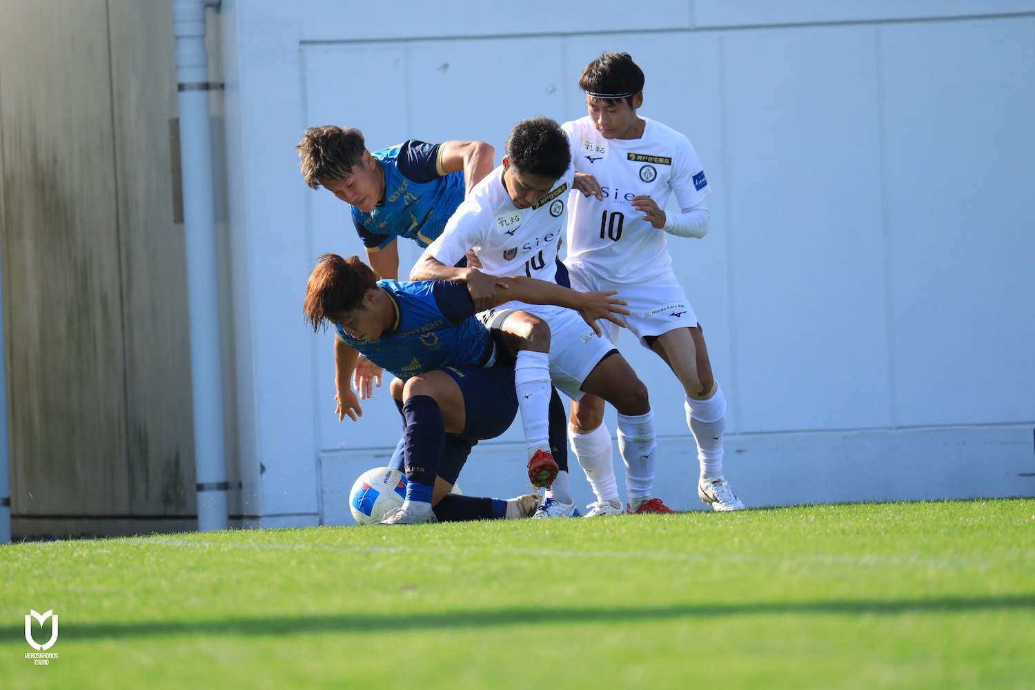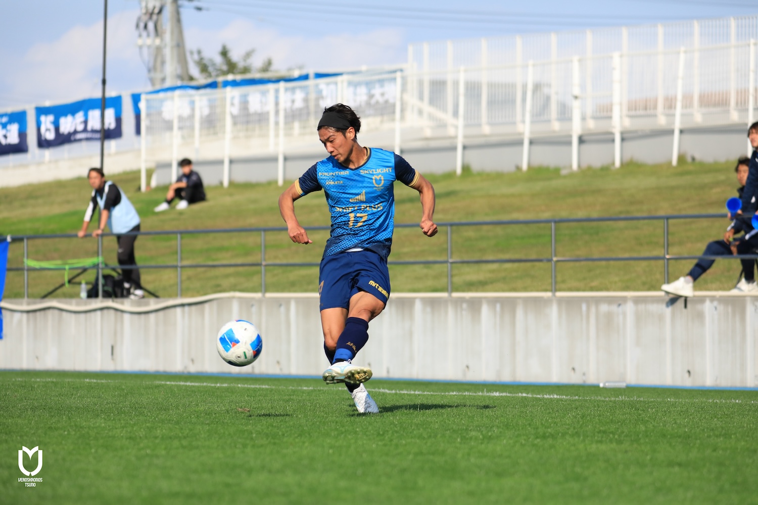 縦を突かれてピンチの場面も次々と訪れましたが、久野選手や武田選手、GK浅井大地選手らが懸命に踏ん張ってゴールを守り、終了間際の相手連続攻撃の場面ではロングスローから枠を捉えられたシュートを五領選手が足を伸ばして食い止めるなど、組織となったディフェンスを徹底してリードを保ったまま折り返しました。
