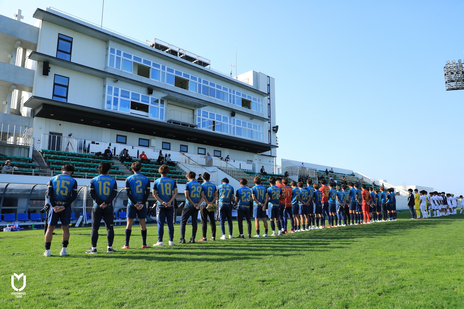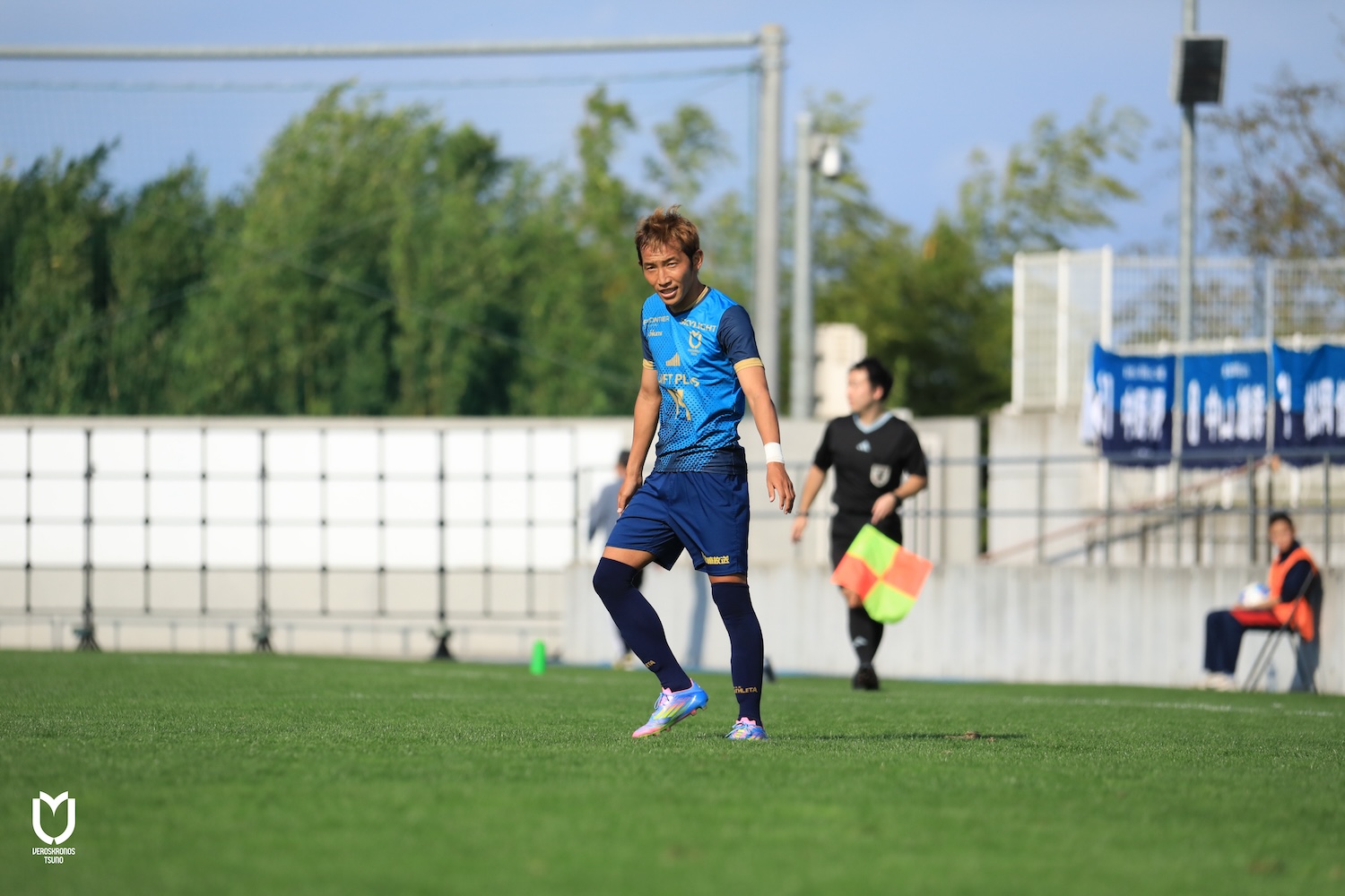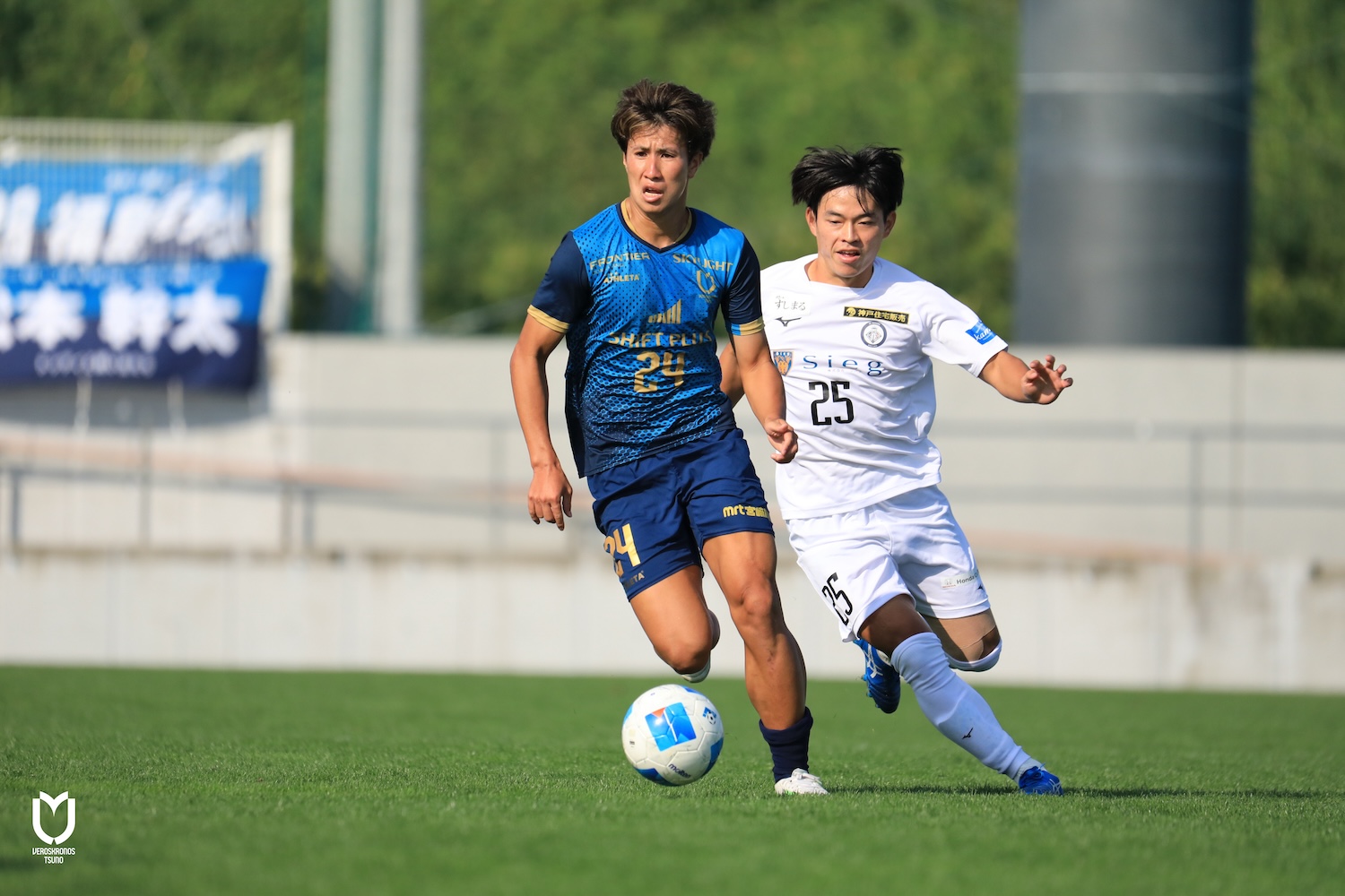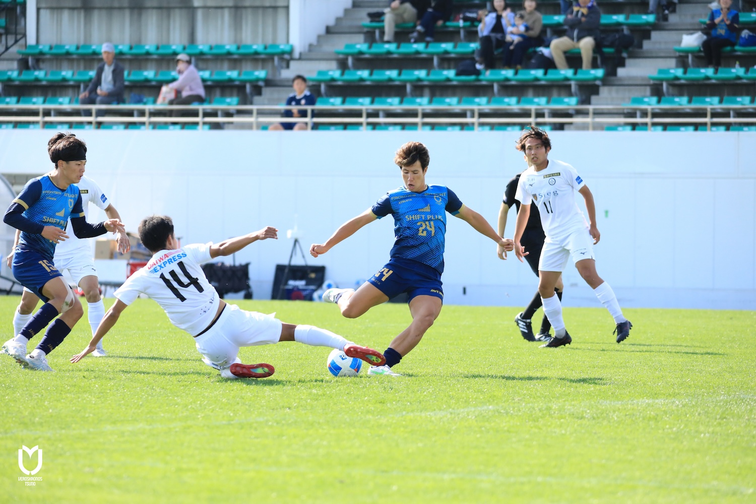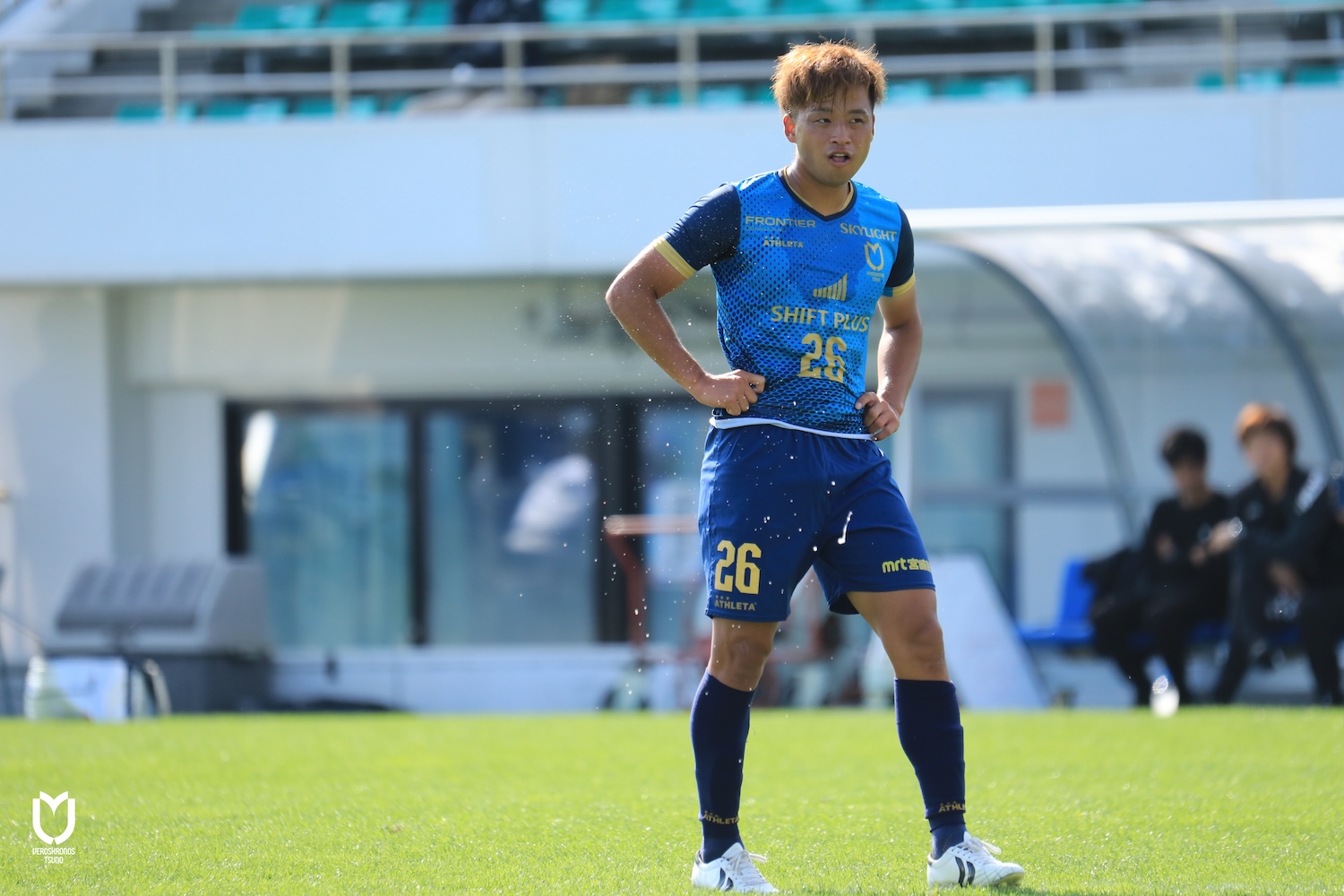 縦を突かれてピンチの場面も次々と訪れましたが、久野選手や武田選手、GK浅井大地選手らが懸命に踏ん張ってゴールを守り、終了間際の相手連続攻撃の場面ではロングスローから枠を捉えられたシュートを五領選手が足を伸ばして食い止めるなど、組織となったディフェンスを徹底してリードを保ったまま折り返しました。