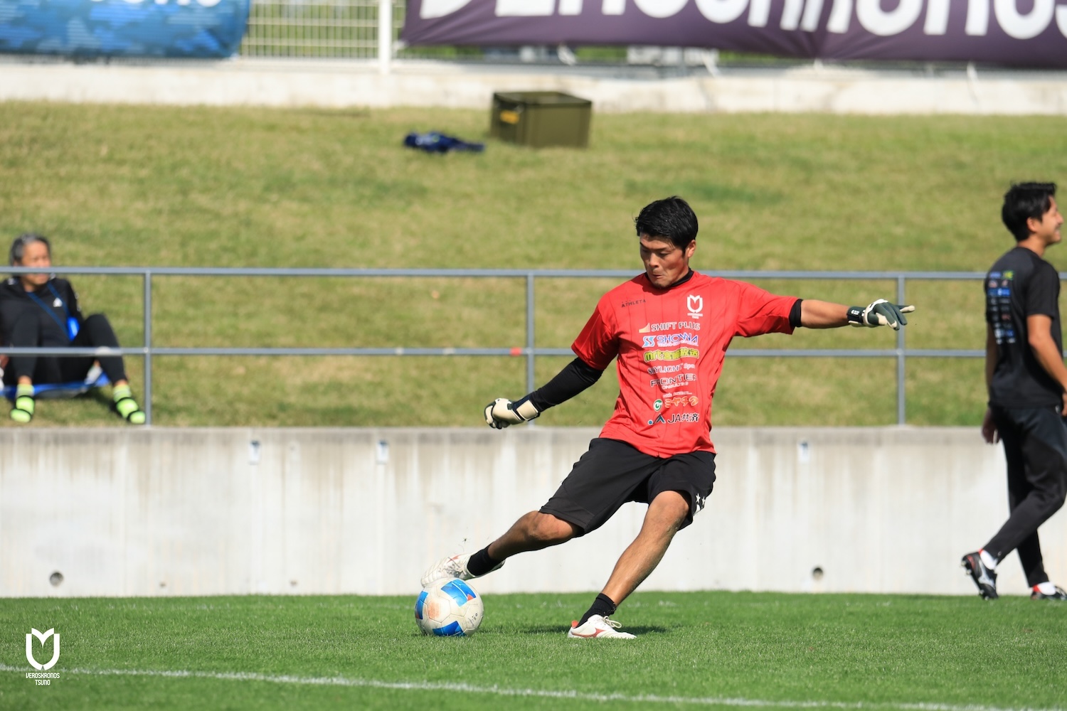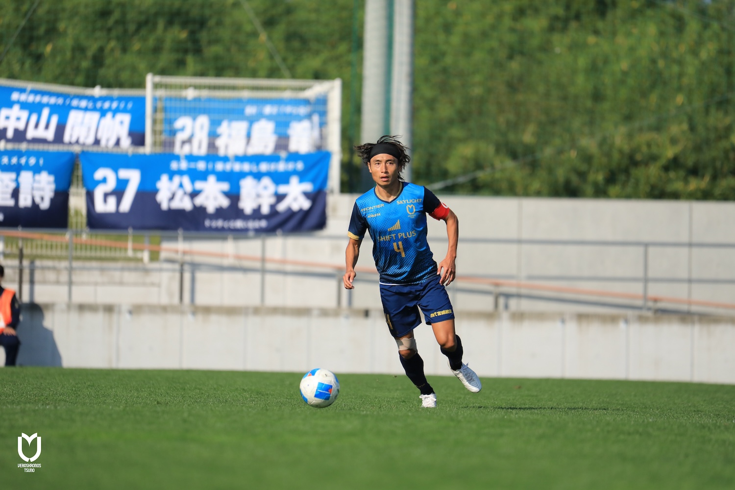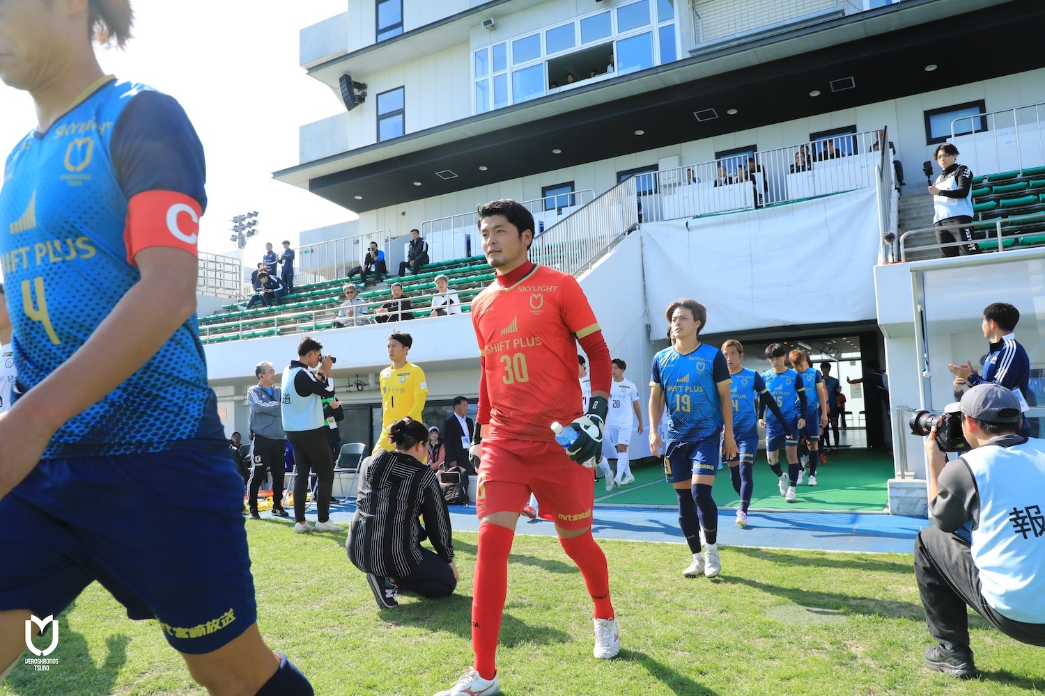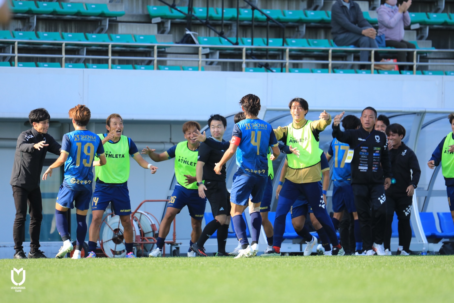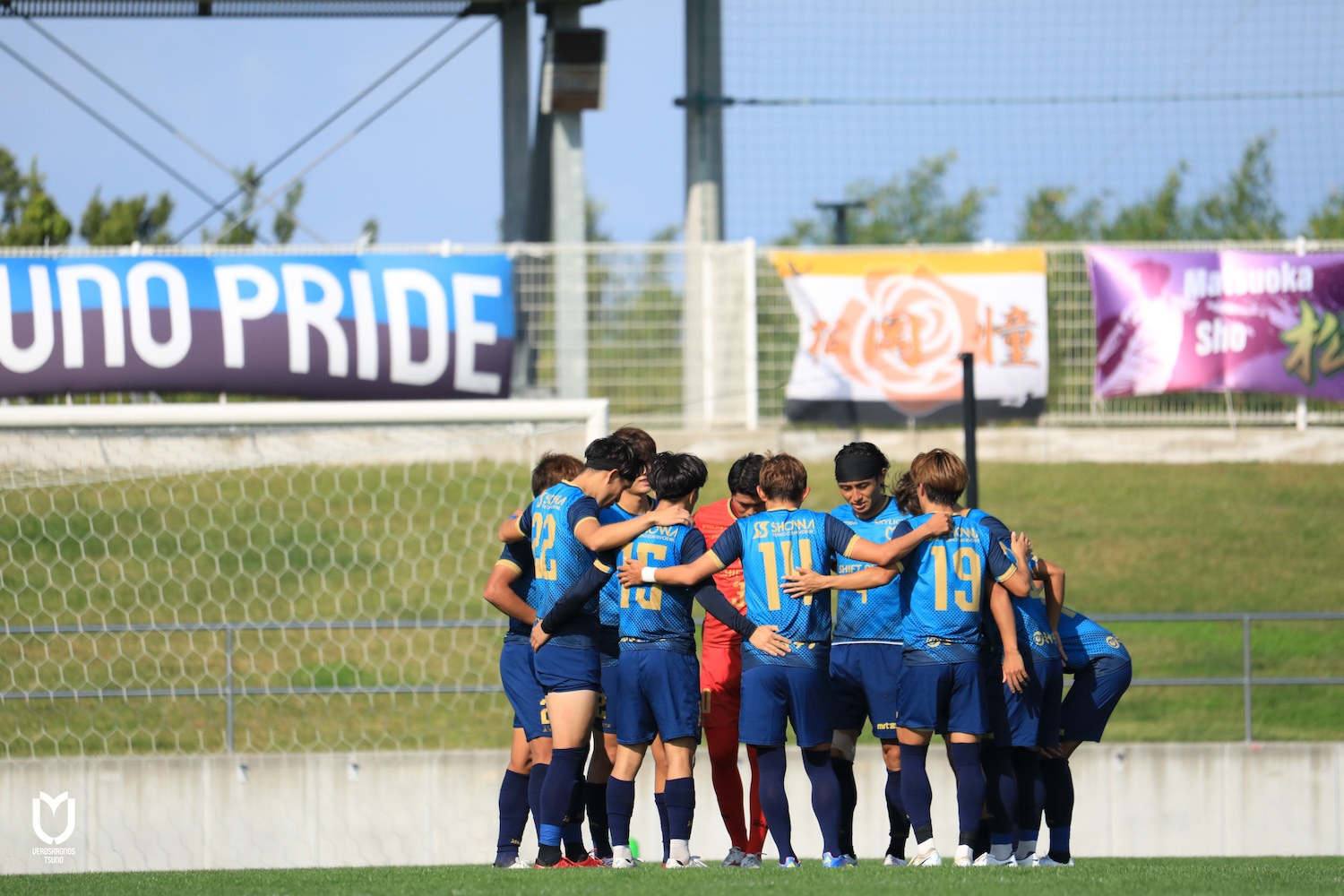 縦を突かれてピンチの場面も次々と訪れましたが、久野選手や武田選手、GK浅井大地選手らが懸命に踏ん張ってゴールを守り、終了間際の相手連続攻撃の場面ではロングスローから枠を捉えられたシュートを五領選手が足を伸ばして食い止めるなど、組織となったディフェンスを徹底してリードを保ったまま折り返しました。