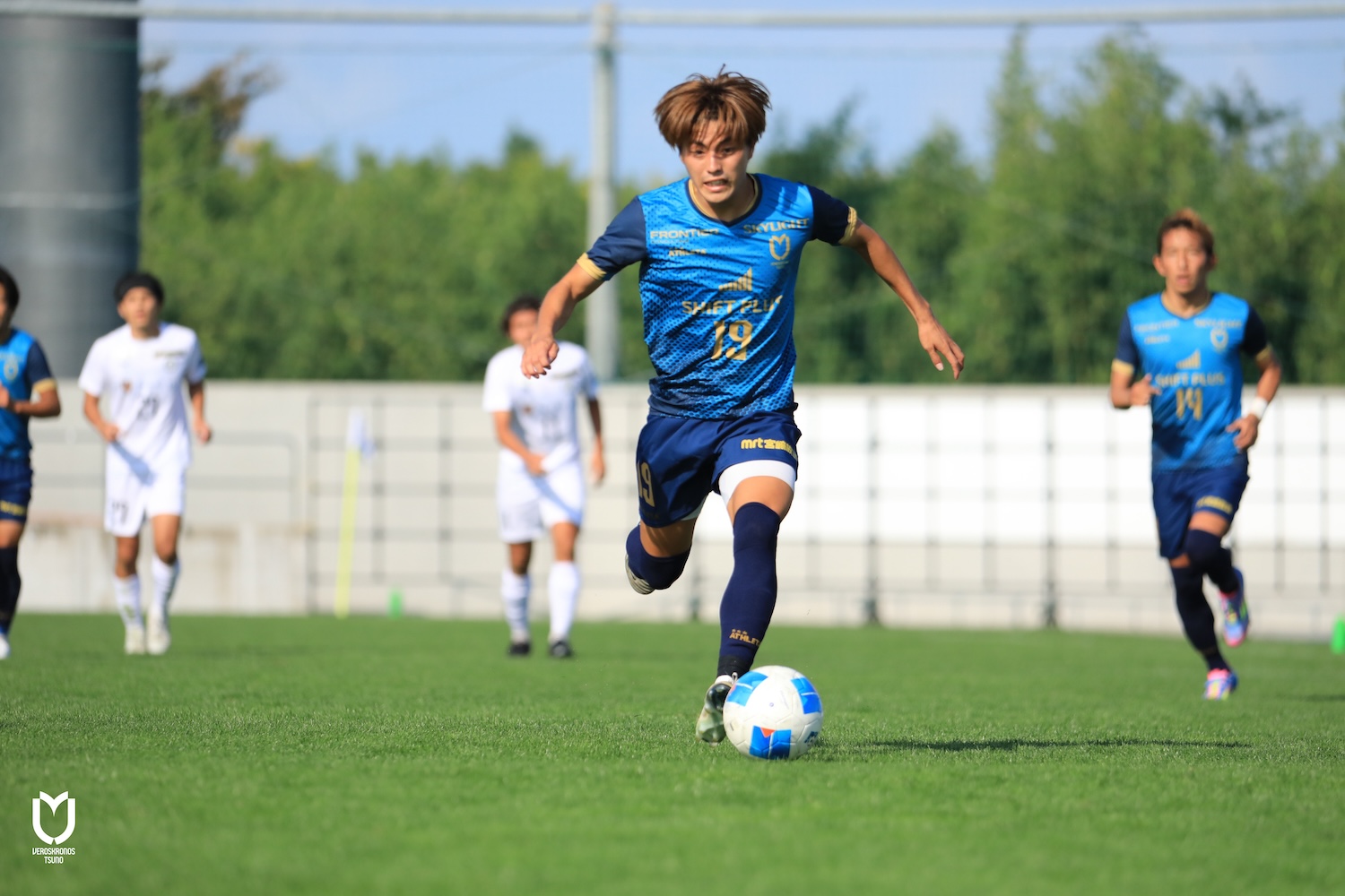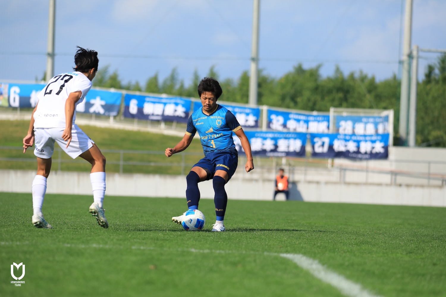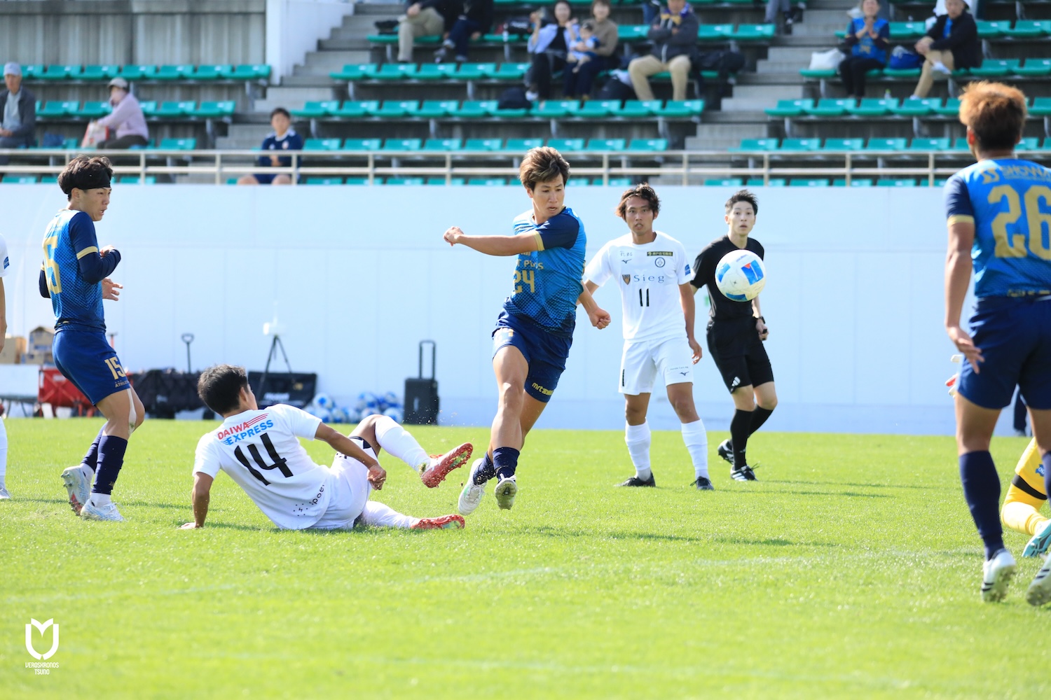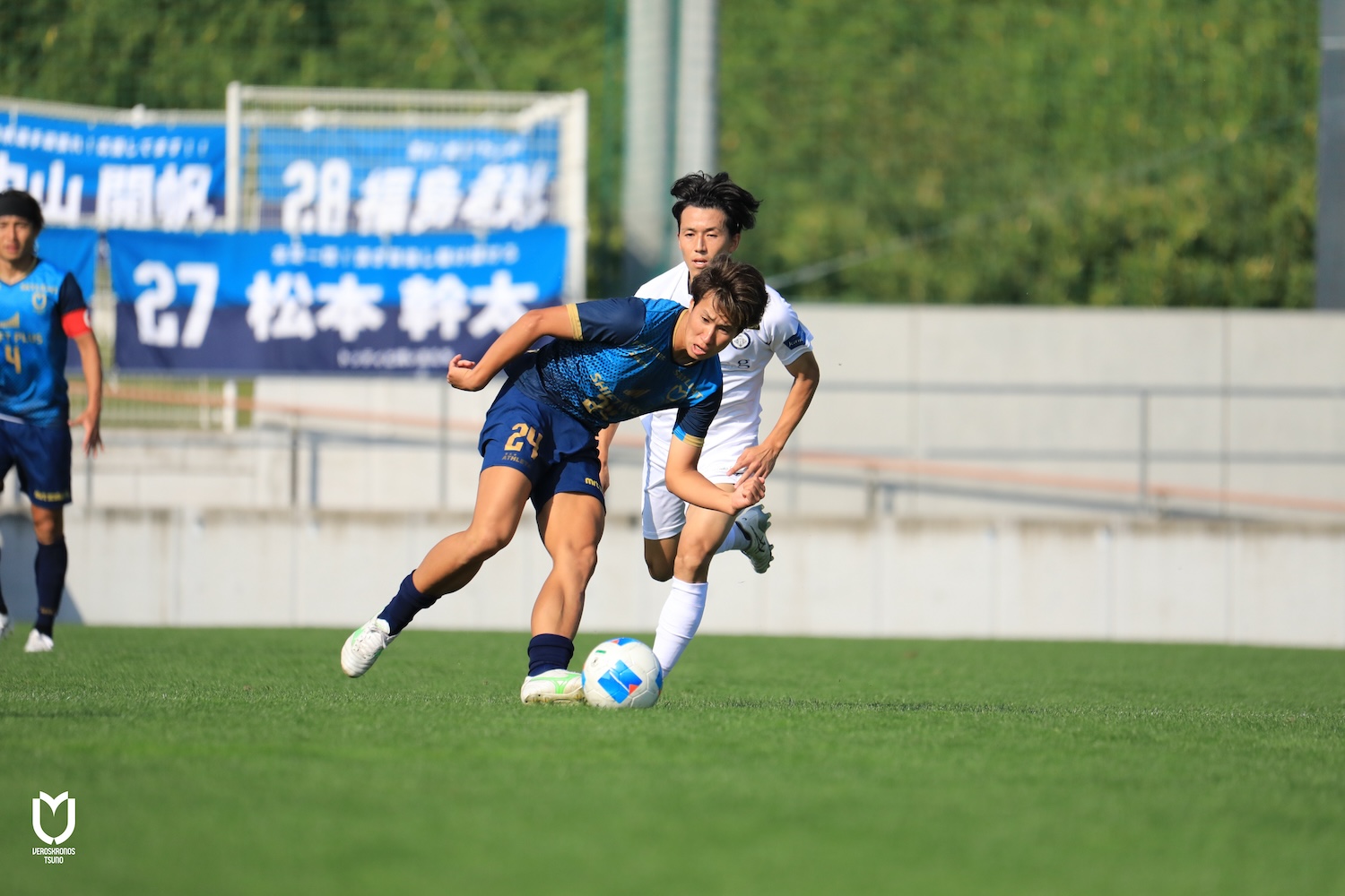 攻守にわたって持ち味通りにゲームを進め、MF梶山幹太選手、永吉広大選手の両ボランチを中心に後方からビルドアップを掛けながらボールを前線へと供給し、開始早々にFW鈴木琉矢選手がシュートまで持ち込むなどリズムを作ります。