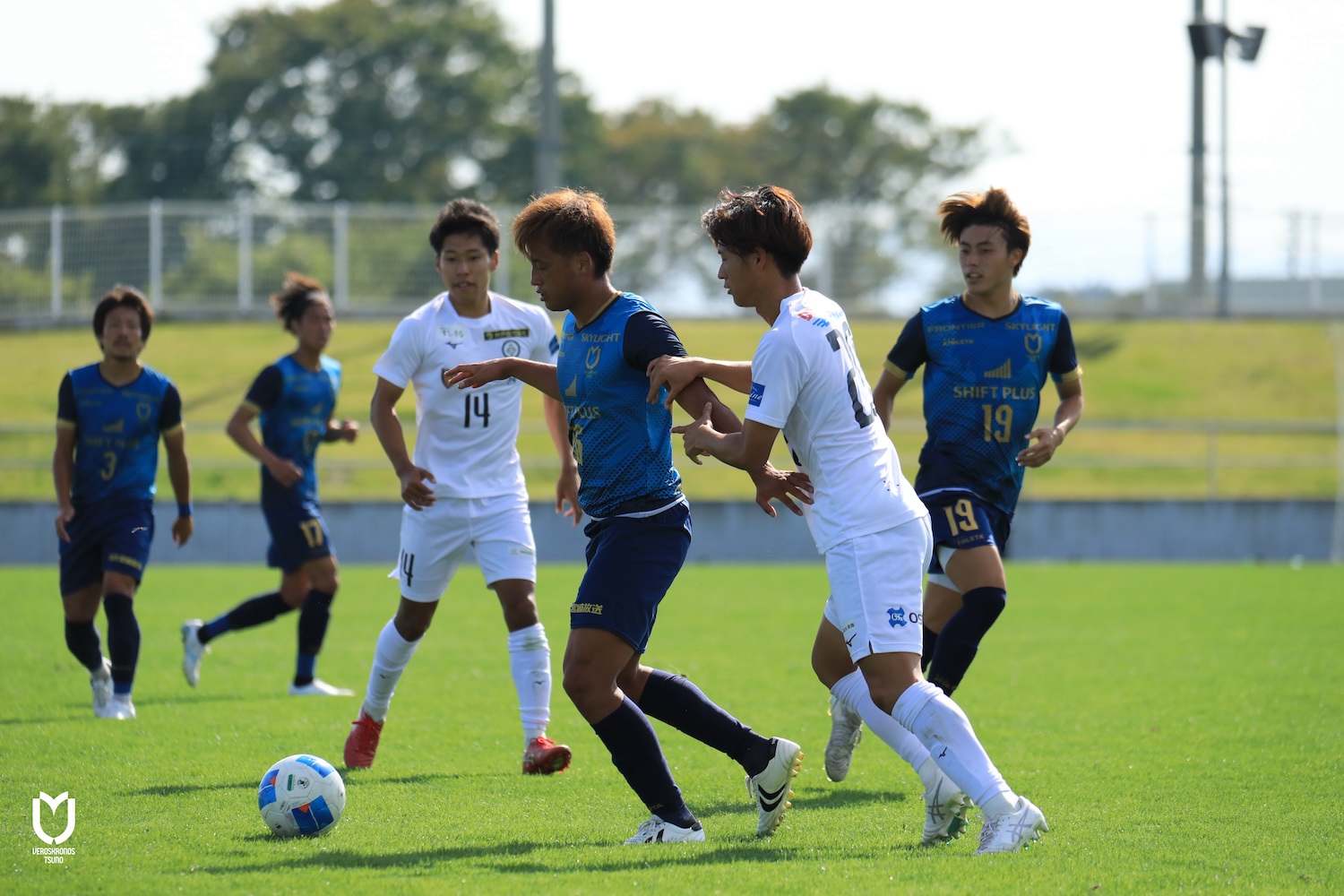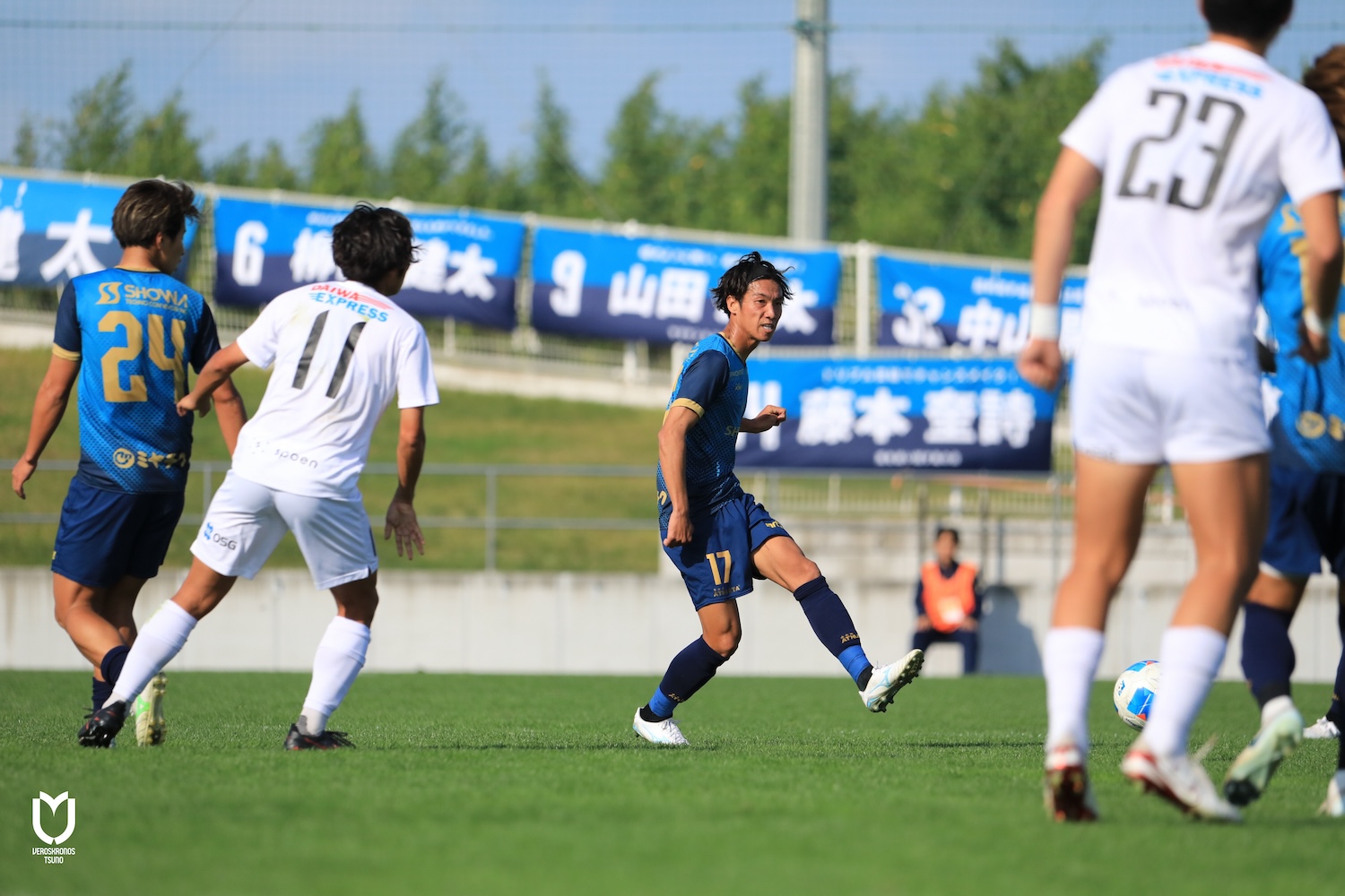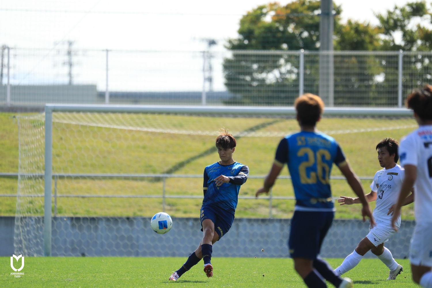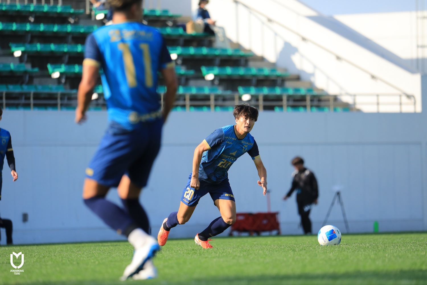 攻守にわたって持ち味通りにゲームを進め、MF梶山幹太選手、永吉広大選手の両ボランチを中心に後方からビルドアップを掛けながらボールを前線へと供給し、開始早々にFW鈴木琉矢選手がシュートまで持ち込むなどリズムを作ります。