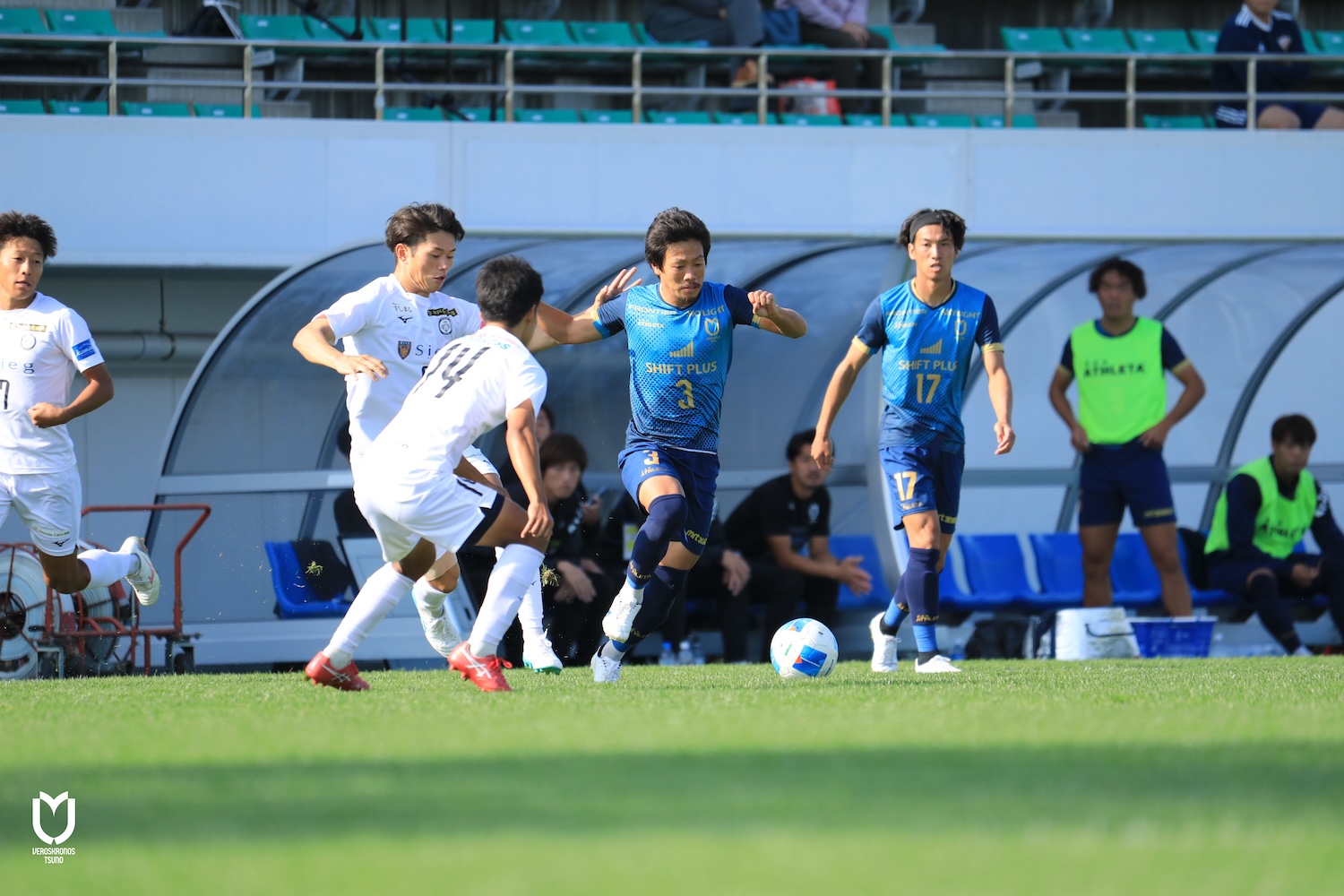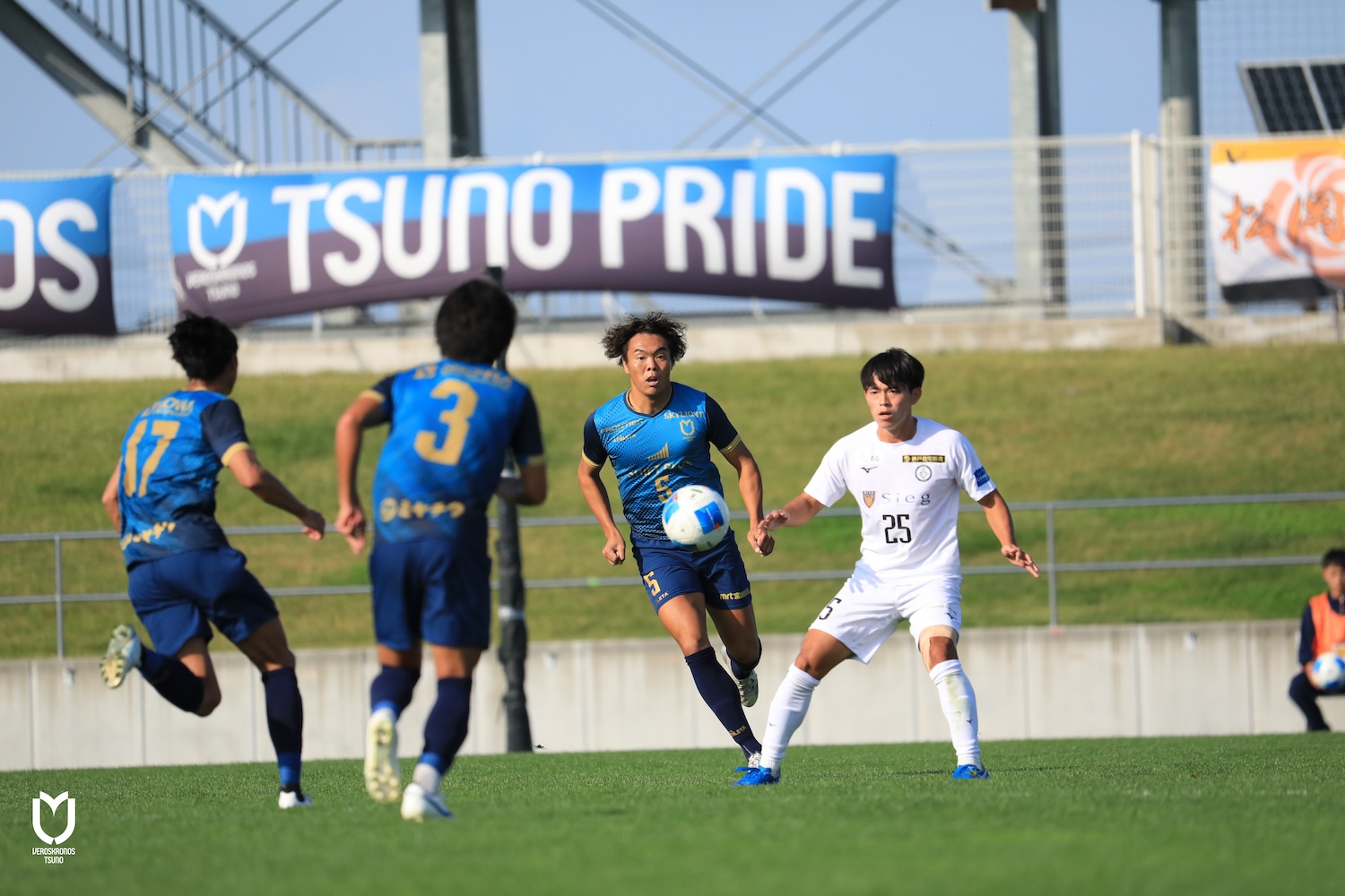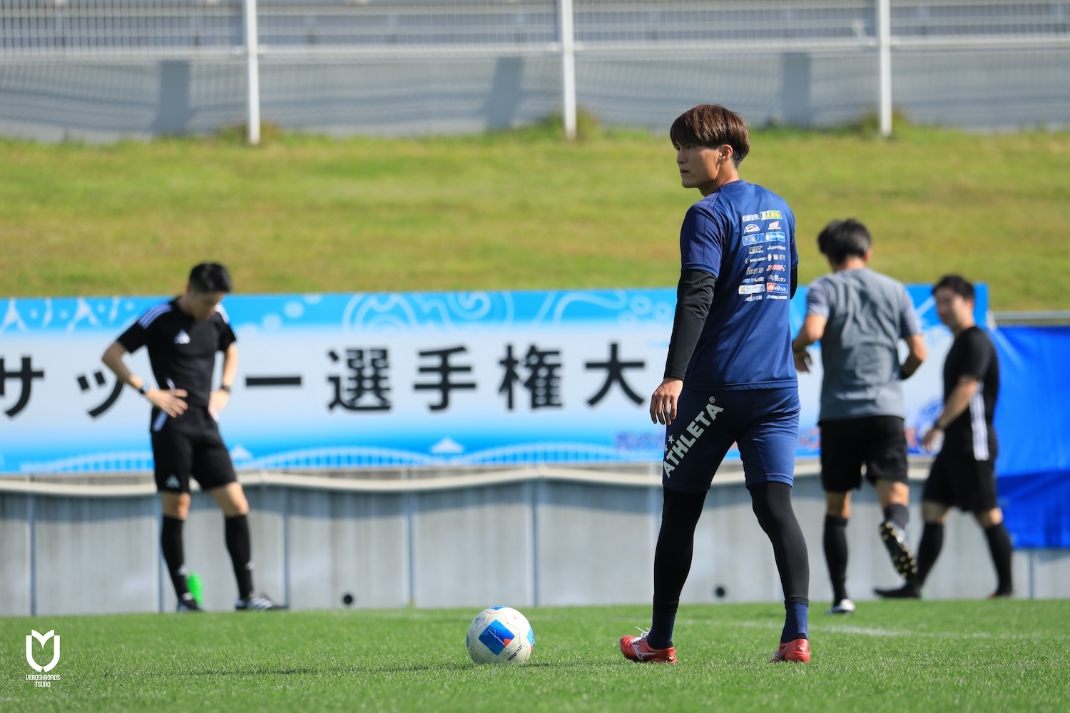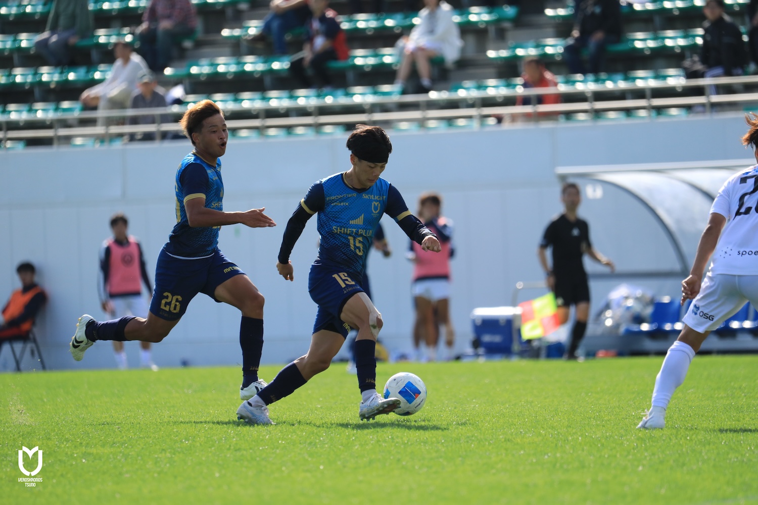 攻守にわたって持ち味通りにゲームを進め、MF梶山幹太選手、永吉広大選手の両ボランチを中心に後方からビルドアップを掛けながらボールを前線へと供給し、開始早々にFW鈴木琉矢選手がシュートまで持ち込むなどリズムを作ります。
