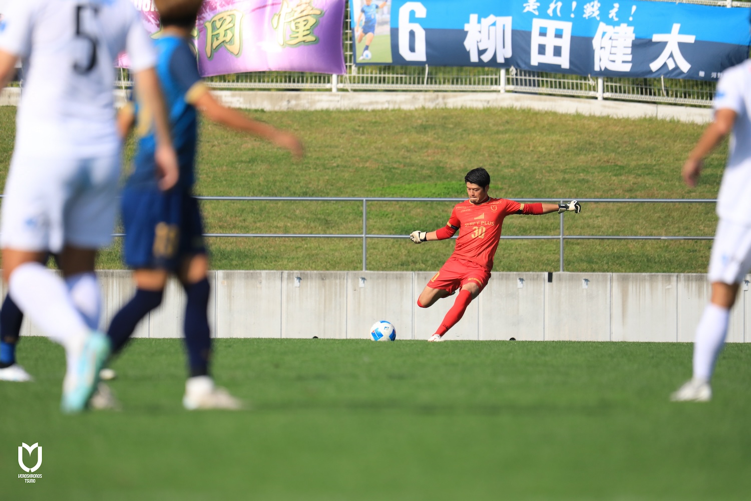 守備面ではDFの藤本奎詩選手、久野龍心選手、松岡憧選手、武田航太朗選手を軸に体を張って相手の両サイドを広く使った攻撃と対峙し、自陣深くまでの侵入を阻みました。