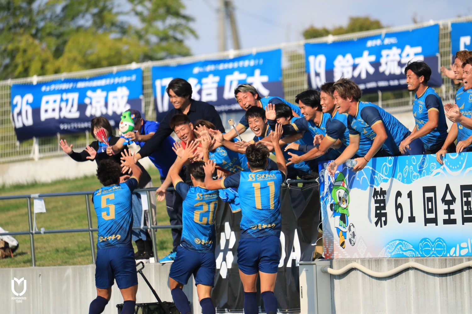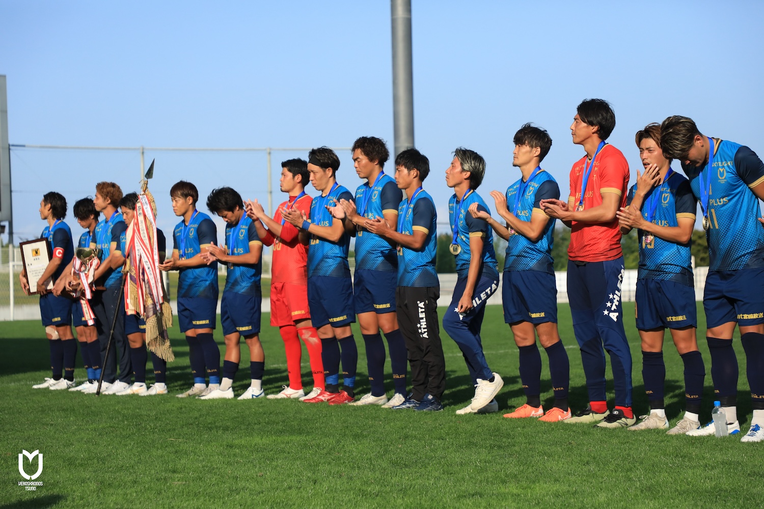 以降はDF山原慧也選手をつぎ込んでゴール前を固め、アディショナルタイム5分を含めた相手のロングボールを起点とした攻撃に11人が一つになって耐え続け、全国3458チームの頂点に立つ歓喜の瞬間を迎えました。