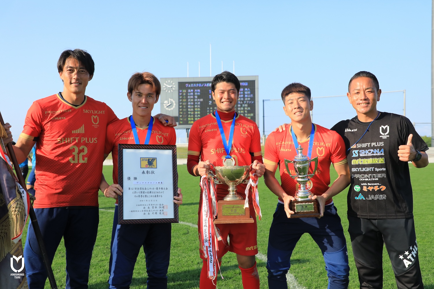 ヴェロスクロノス都農は決勝でFC BASARA HYOGO(関西)に2―1で競り勝ち、宮崎県勢初の社会人サッカー日本一を成し遂げました。