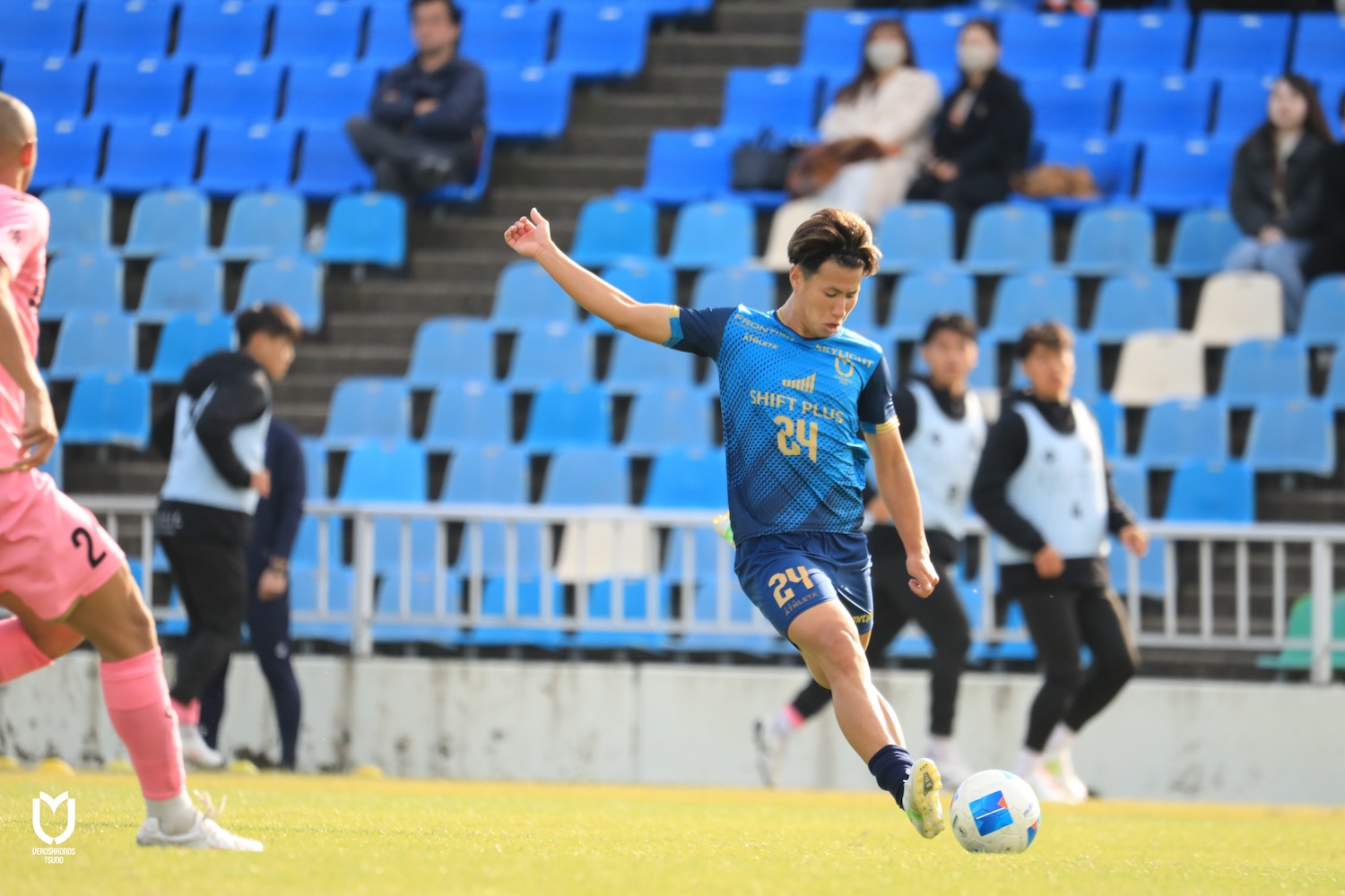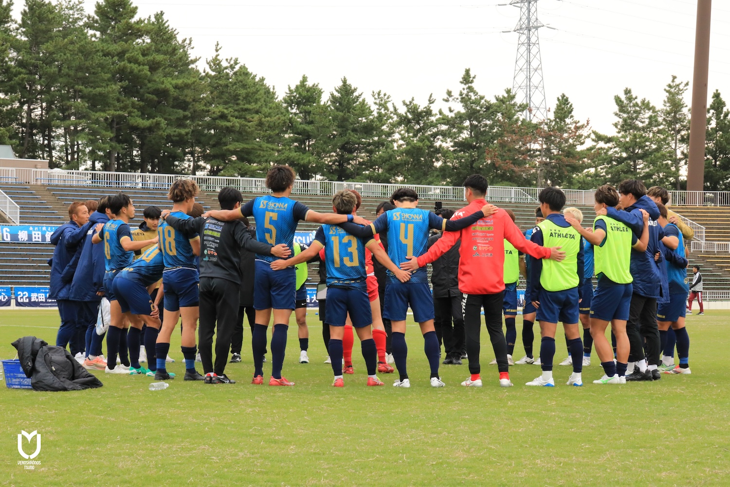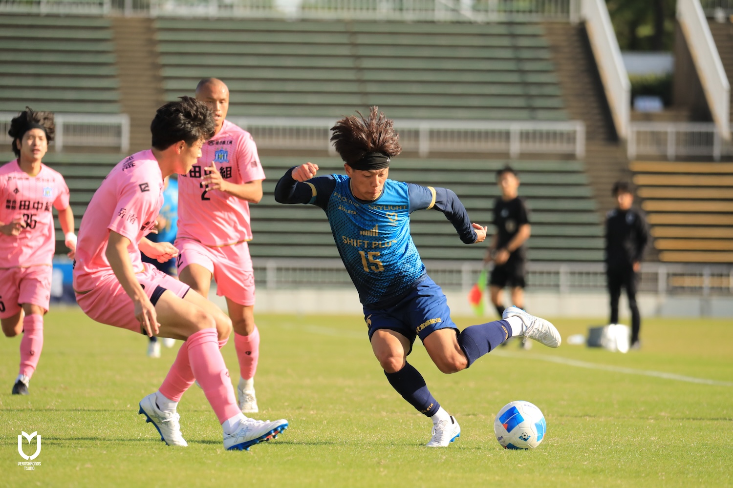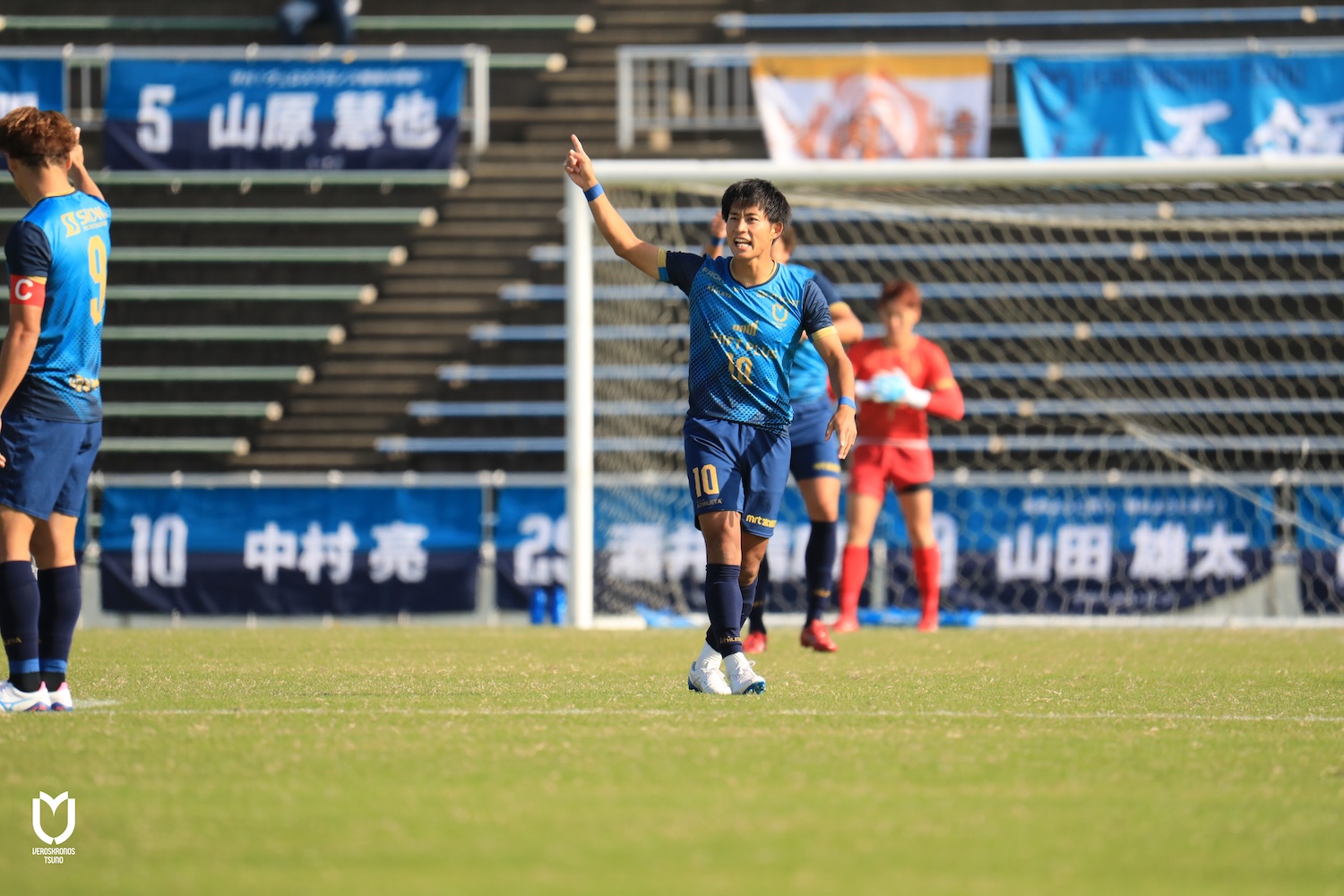 持ち味の思い通りにボールを握る展開には持ち込めずに時間は経過しましたが、少ない好機には途中出場のFW上米良柊人選手や酒井信磨選手らが懸命に前進を図って好機を生み出し、守備の時間帯にリズムを繋ぎました。