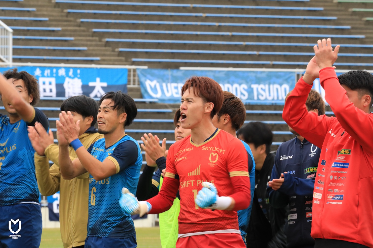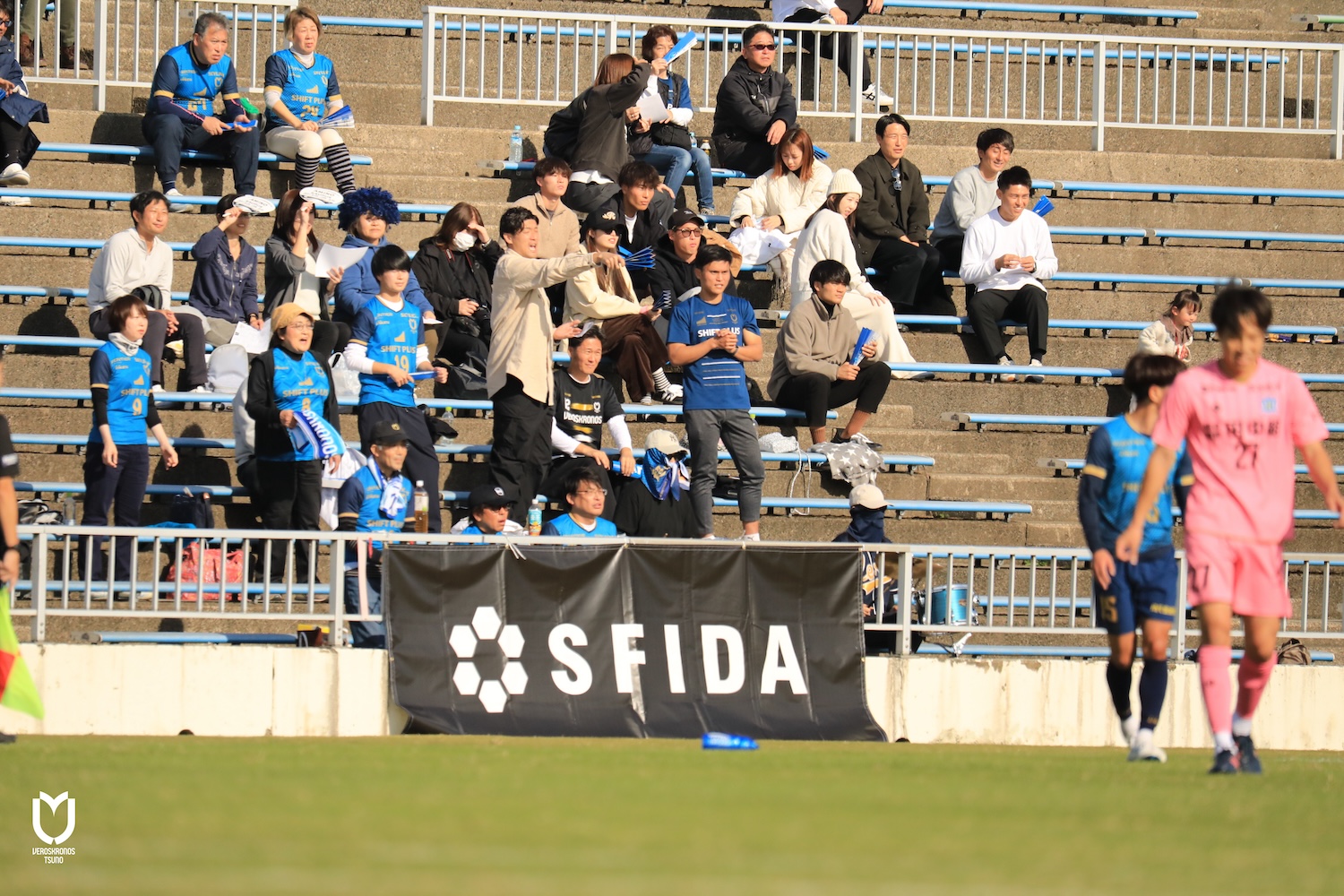 30分過ぎからはさらに攻勢が強まりましたが、DFの松岡憧選手、藤田大道選手を投入して守備固めを図り、ゲーム終了のホイッスルまで高い守備の意識を切らすことなく1点を守り抜きました。