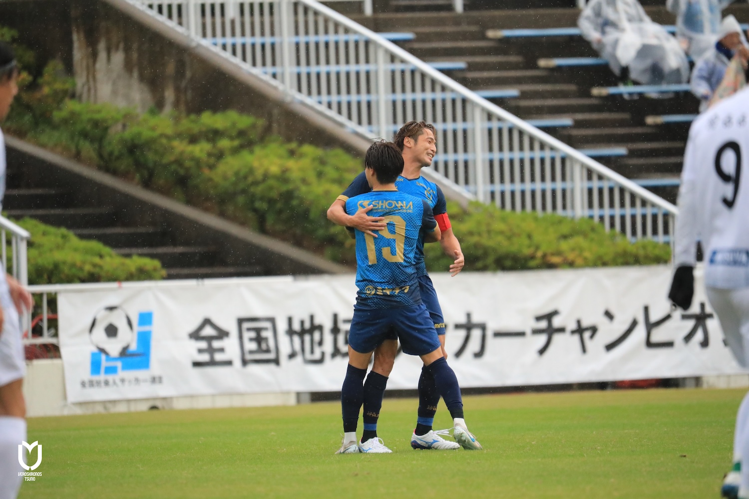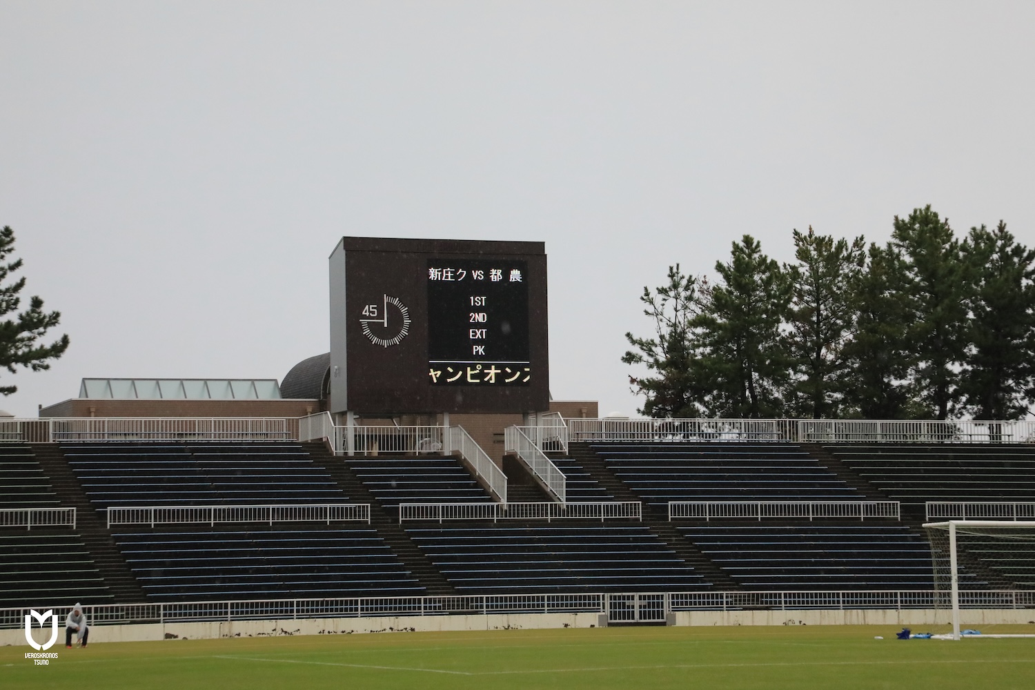 Aグループのヴェロスクロノス都農は福井県坂井市のテクノポート福井スタジアムで富山新庄クラブ(北信越)と対戦し、3―1で勝利しました。通算成績を2勝1分けの勝ち点7に伸ばしてグループ1位が確定し、ヴェロスクロノス都農に改名してから初の決勝ラウンド進出を決めました。4チームが総当たりリーグ戦でJFL昇格を競う決勝ラウンドは11月20日(木)、22日(土)、24日(月)に千葉県市原市のゼットエーオリプリスタジアムで行われます。