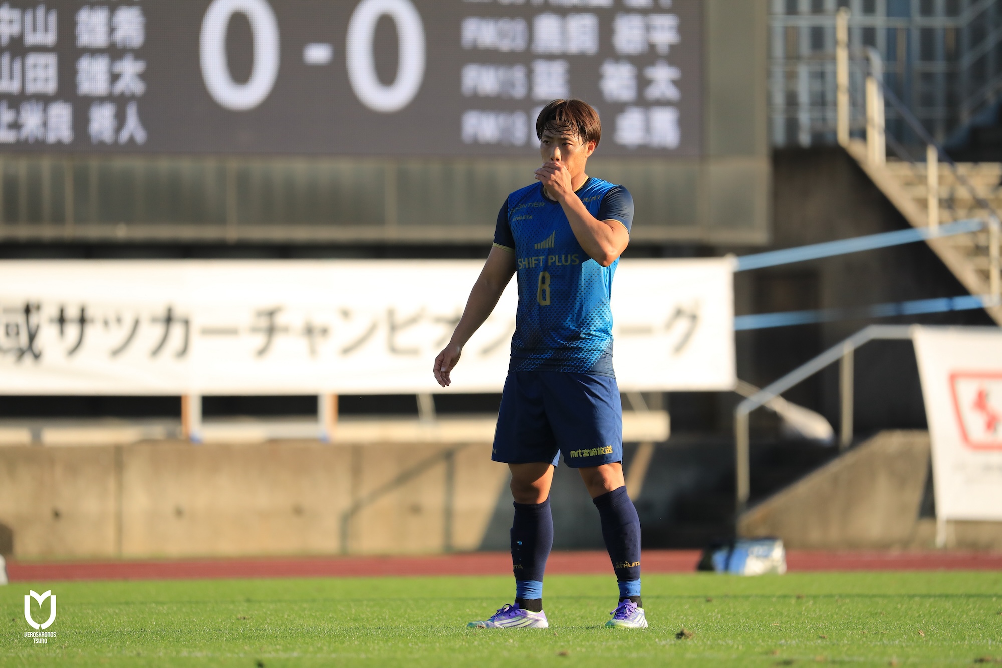 堅守から攻撃に転じ、運動量豊富なFW上米良柊人選手を投入して持ち味の長短と緩急を絡めたアタックで揺さぶりを掛けて前進を図りましたが、シュートまで持ち込むことができないもどかしい展開が続きました。