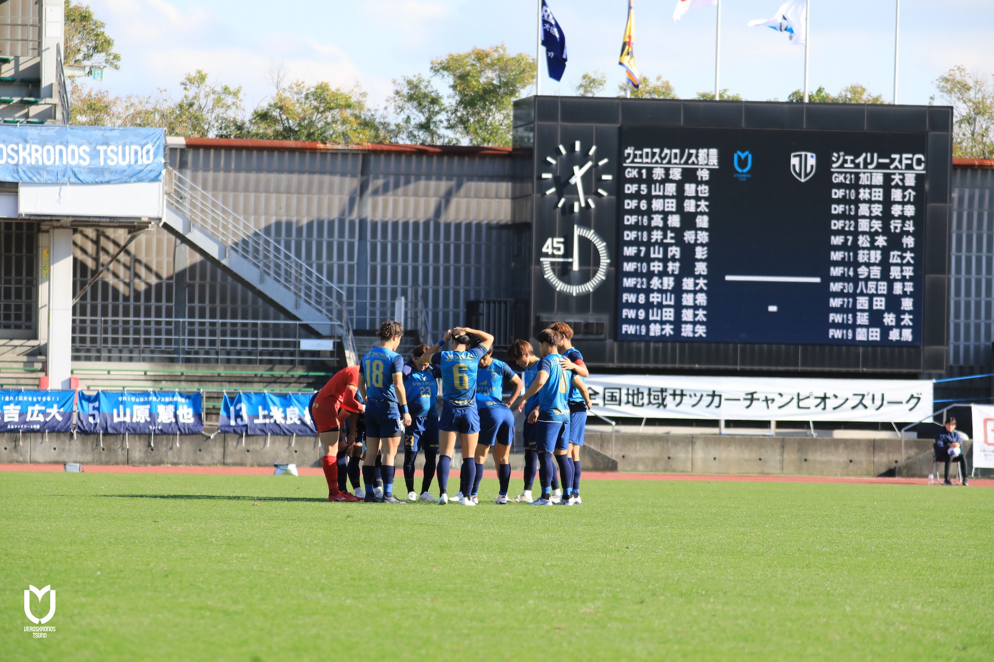 第1日は2試合が行われ、ヴェロスクロノス都農は同じ九州リーグ所属のジェイリースFCと対戦し、互いに決め手を欠いたまま0―0で引き分け、勝ち点1スタートとなりました。