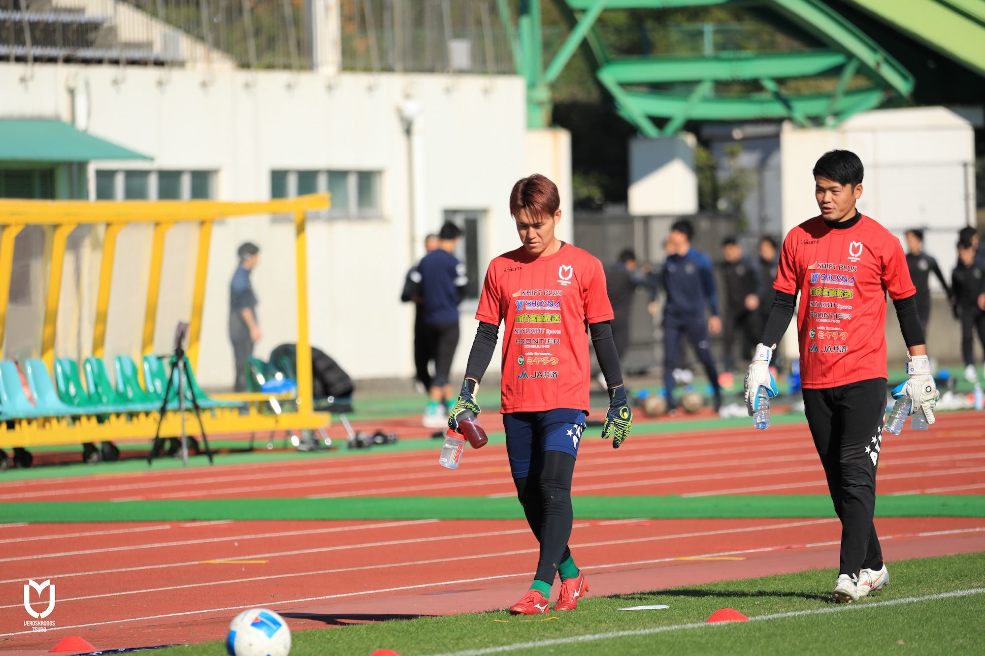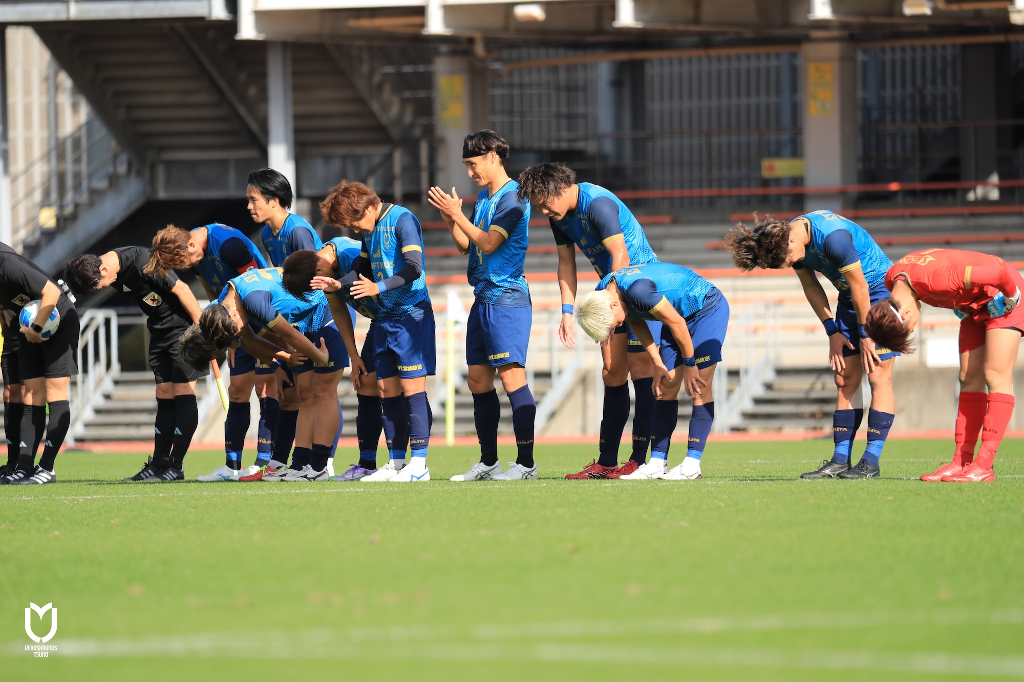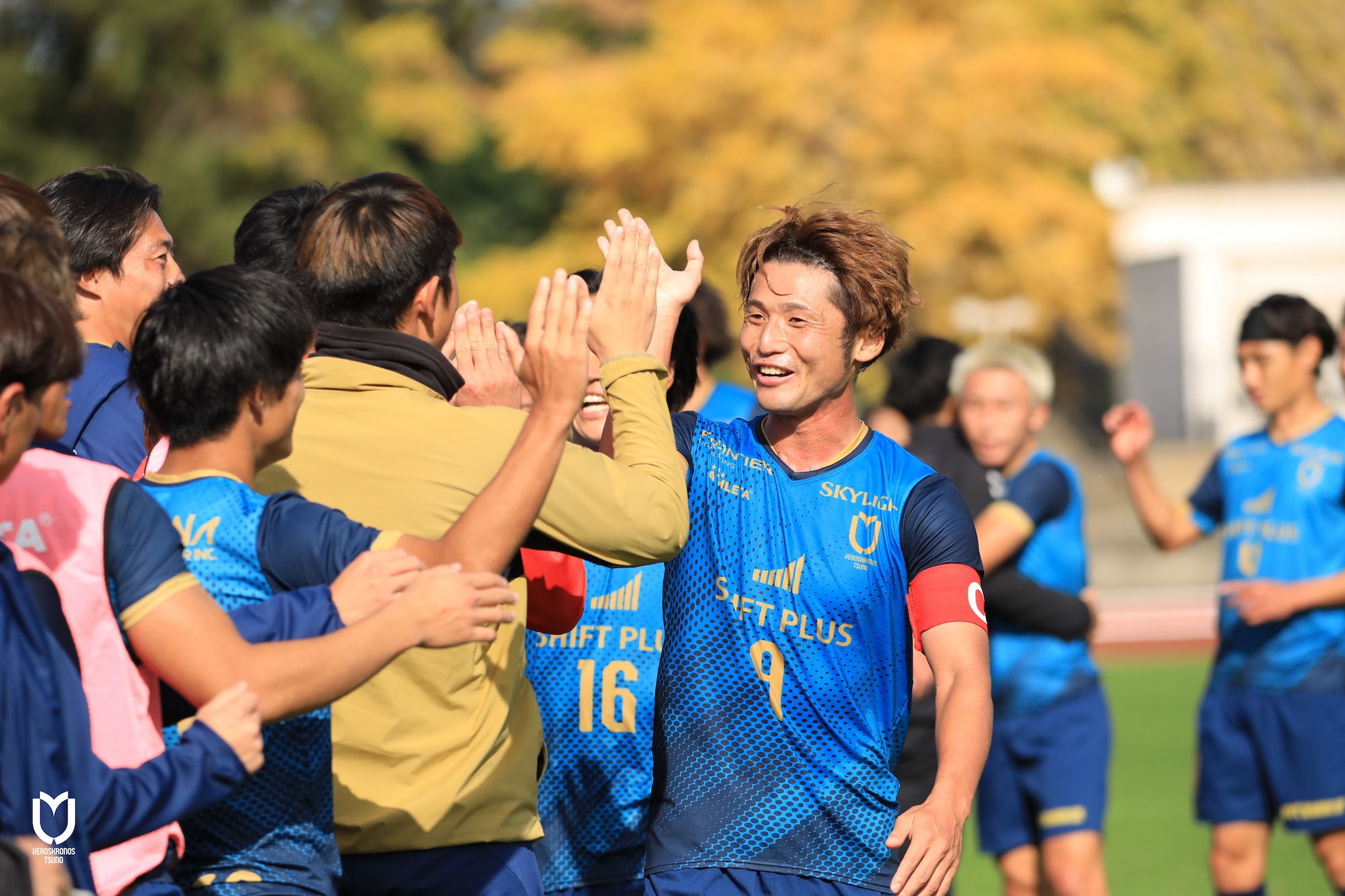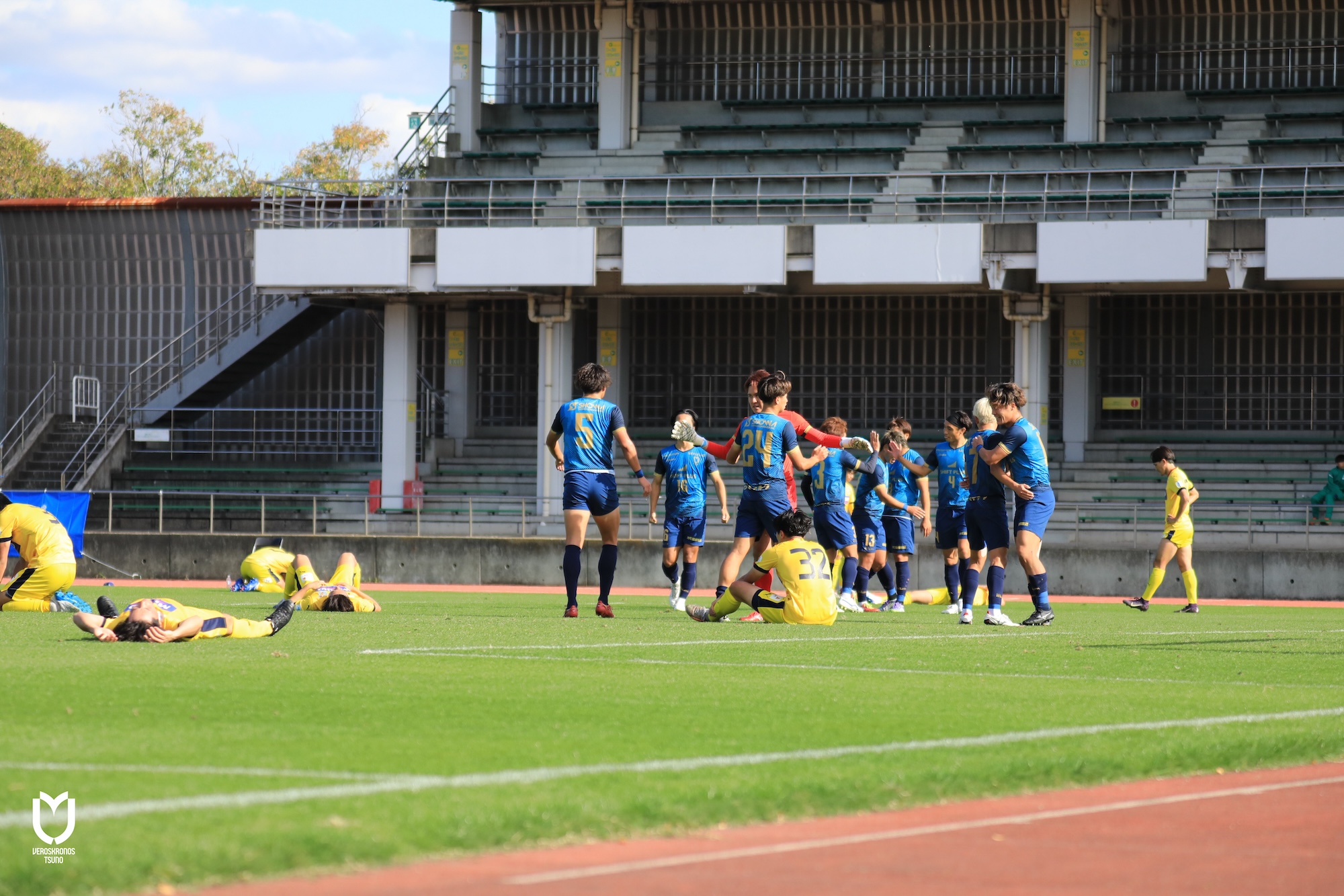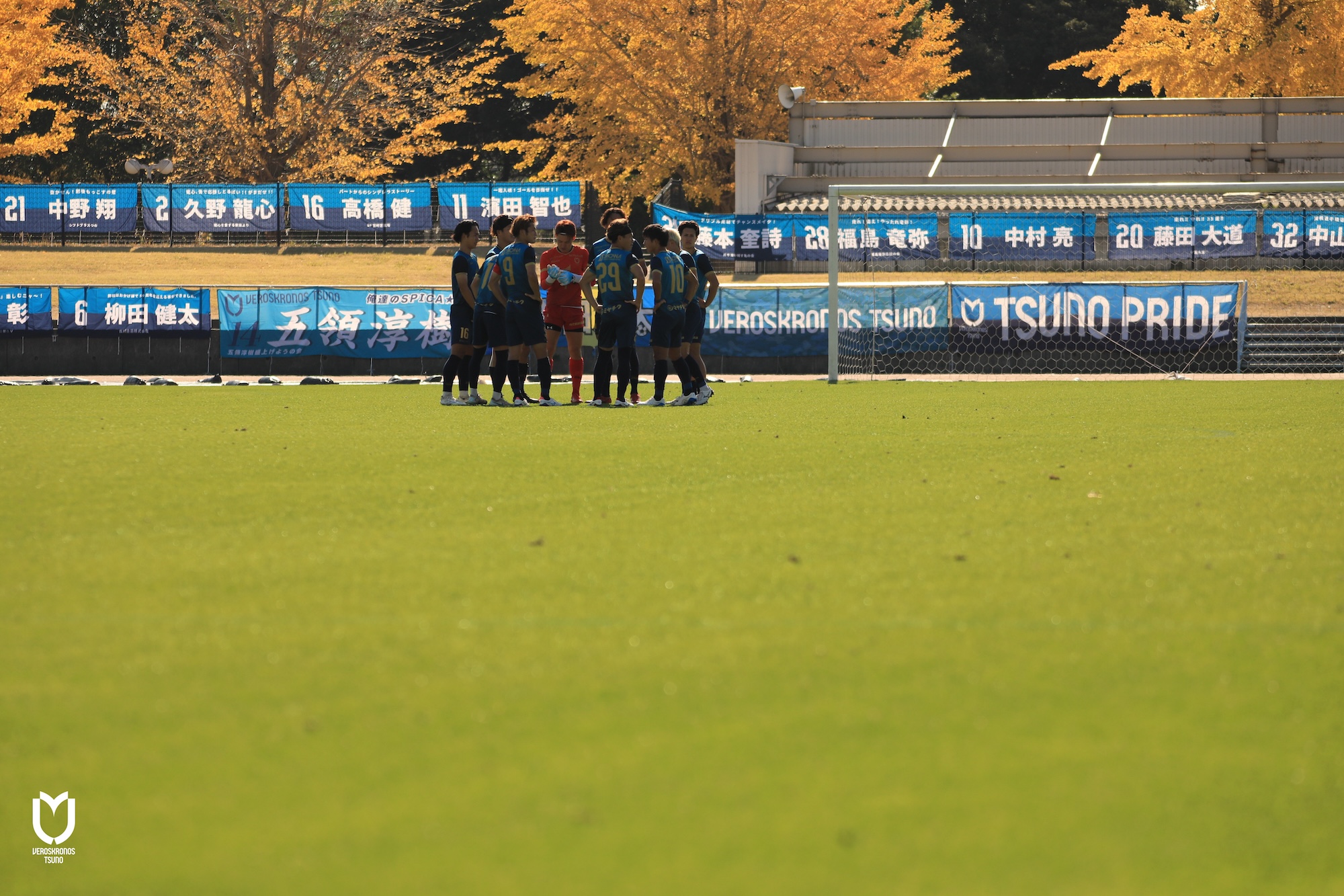 後半は入りこそ一進一退の攻防に持ち込みましたが、攻撃的な選手を投入した相手に徐々に流れが傾きます。左右に揺さぶられてゴール前にクロスを放り込まれ、アタックのセカンドボールを奪われてカウンター攻撃を浴びるなど、10分頃からはディフェンスの連続を強いられました。思い通りにボールを支配することが出来ない苦しい展開となりましたが、積み上げてきた堅守は崩れず、DF高橋健選手、井上選手、山原選手が的確なポジショニングでシュートコースを狭めながらクロスボールも弾き返し、ペナルティーエリア内に持ち込まれた際には永野選手や鈴木選手が懸命に足を伸ばしてブロックしました。打たれたシュートに対してはGK赤塚怜選手が冷静な判断力を見せてビッグセーブを連発すると、ゴール前の混戦も11人が一体となって集中力を切らすことなく跳ね返し続けました。