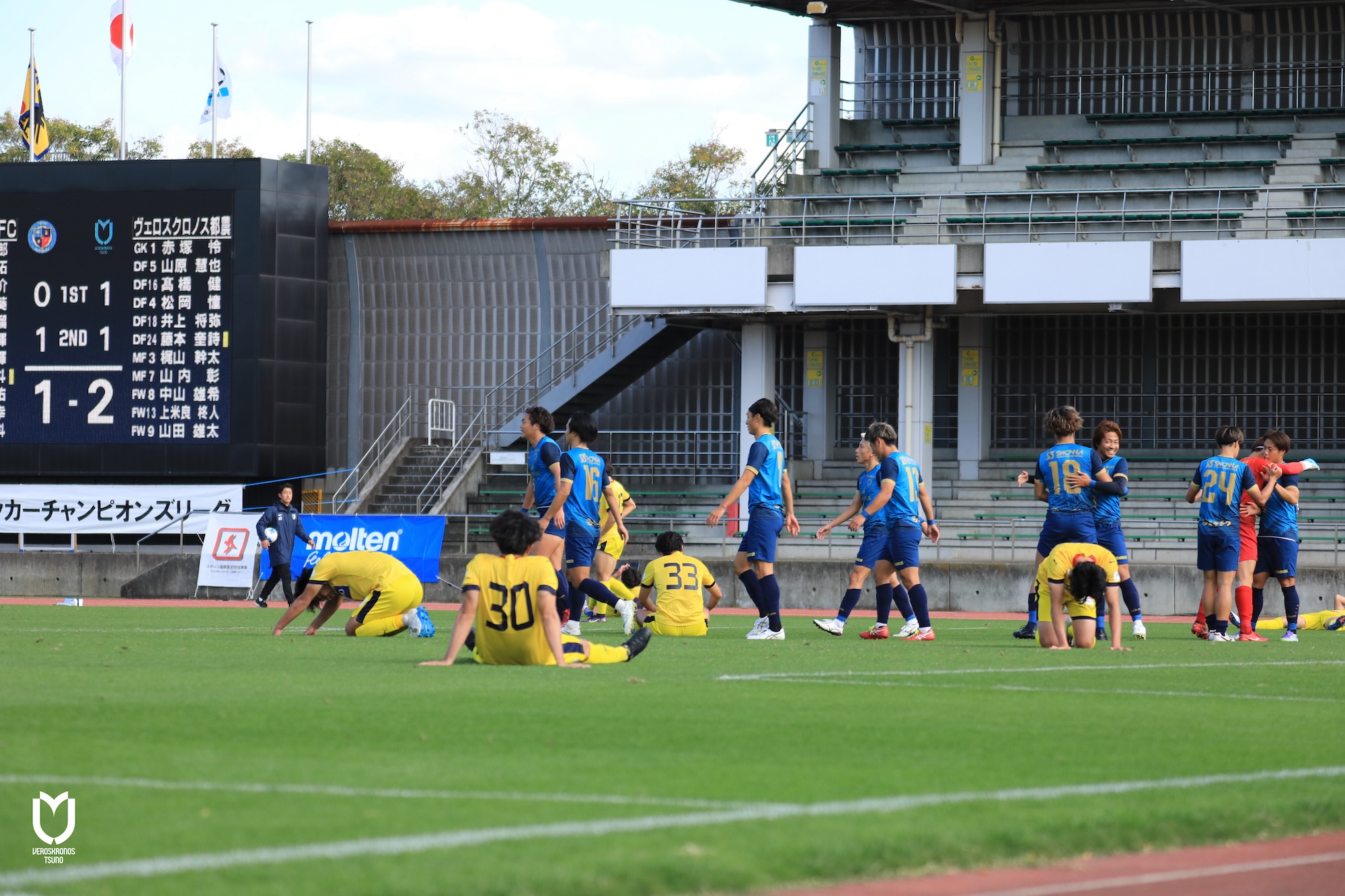 決勝ラウンド最終日は24日(月)に同会場で2試合を行い、最終順位が確定します。ヴェロスクロノス都農は午後1時半より勝ち点3で3位のVONDS市原FC(関東)と対戦します。
