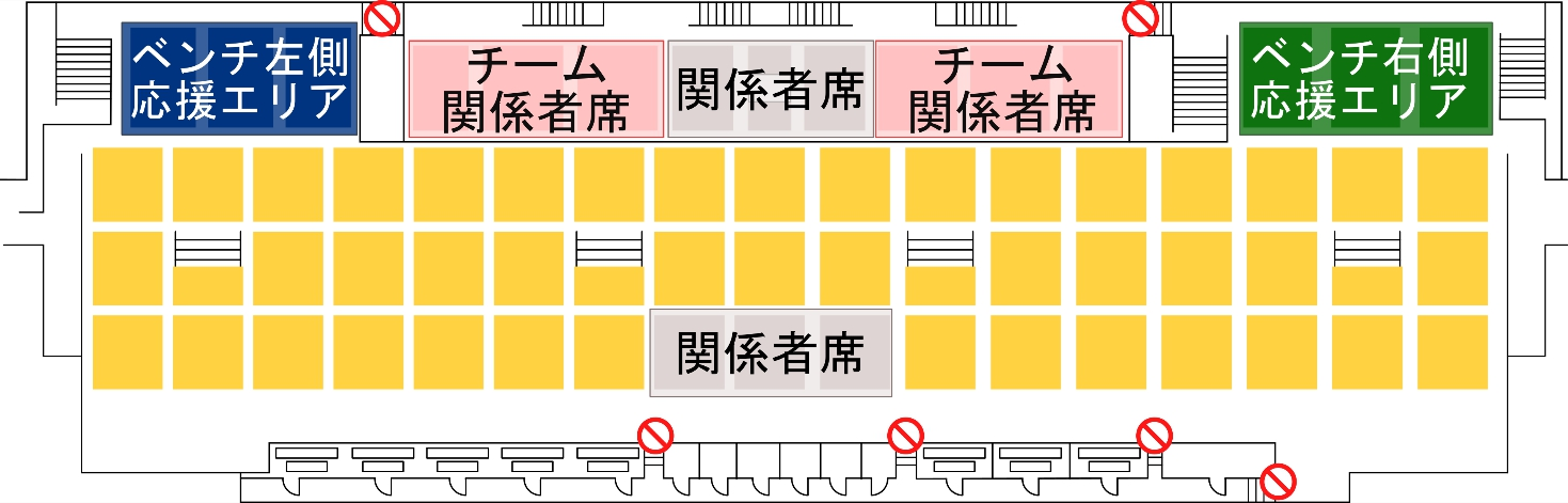 · 下層階中央(1 階席)及び上層階最上部(2 階席)は関係者・チーム席となりますので、一般の方のご着席はご遠慮ください。