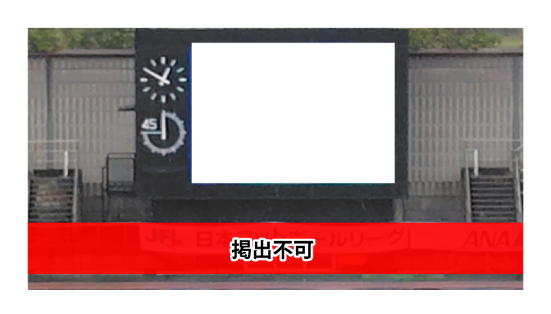 ・スポンサー名の入っている横断幕等(応援フラッグやゲートフラッグ等も含む)の掲出はできません。誹謗 中傷や主催・主管者として好ましくないものと判断した場合、横断幕の掲出はお断りし、撤去させていただ きます。