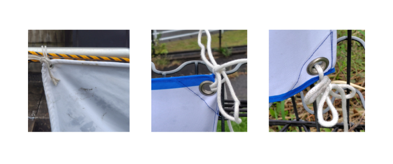 ・ガムテープ類を使用しての掲出は禁止です。紐および養生テープを使用して掲出してください。