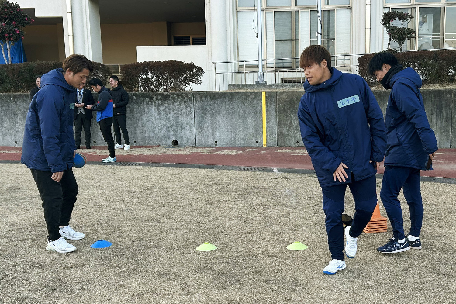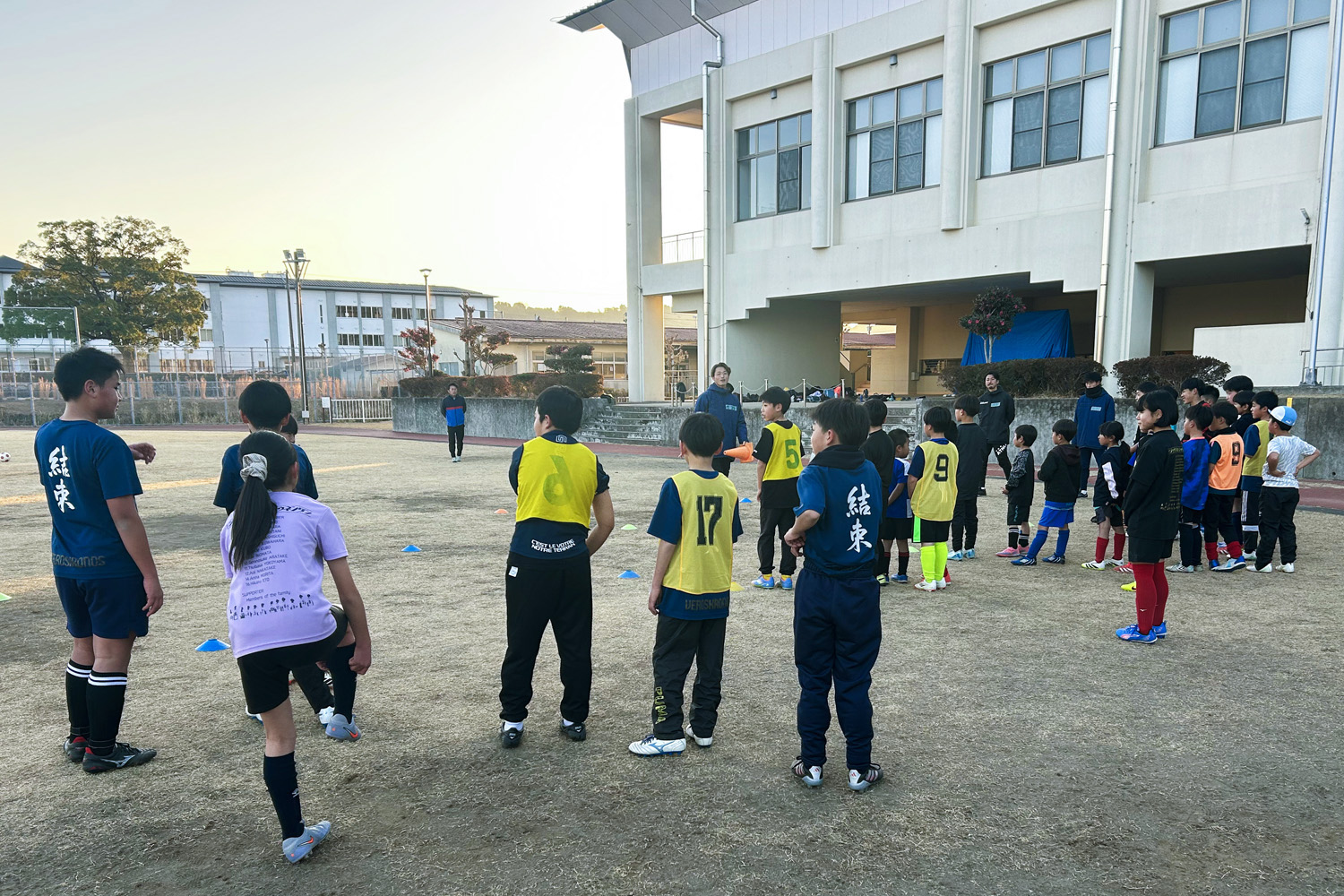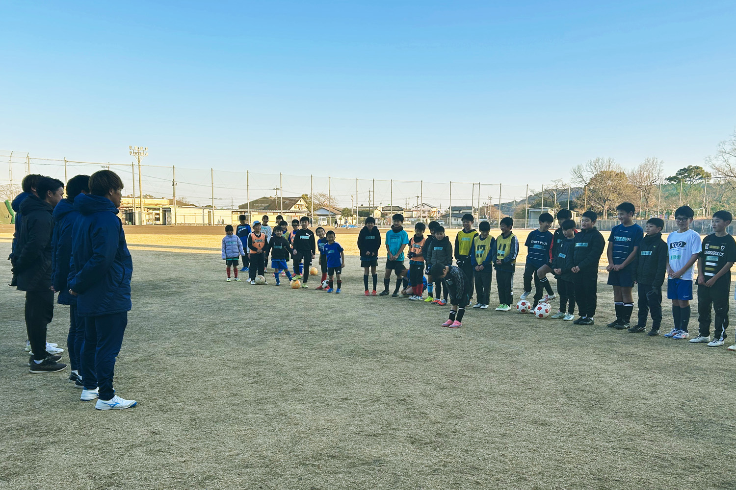 木城サッカースポーツ少年団の練習に、弊クラブより山田雄太選手、中村亮選手、中山雄希選手、砂辺亮馬トレーナーの4名が特別コーチとして参加しました。