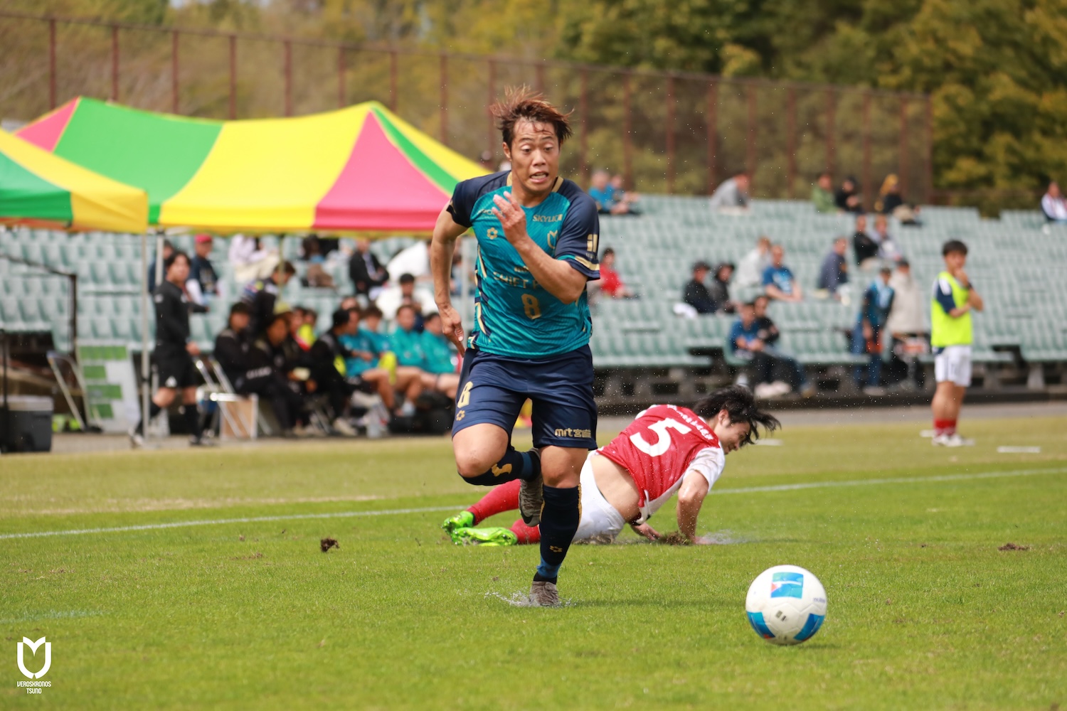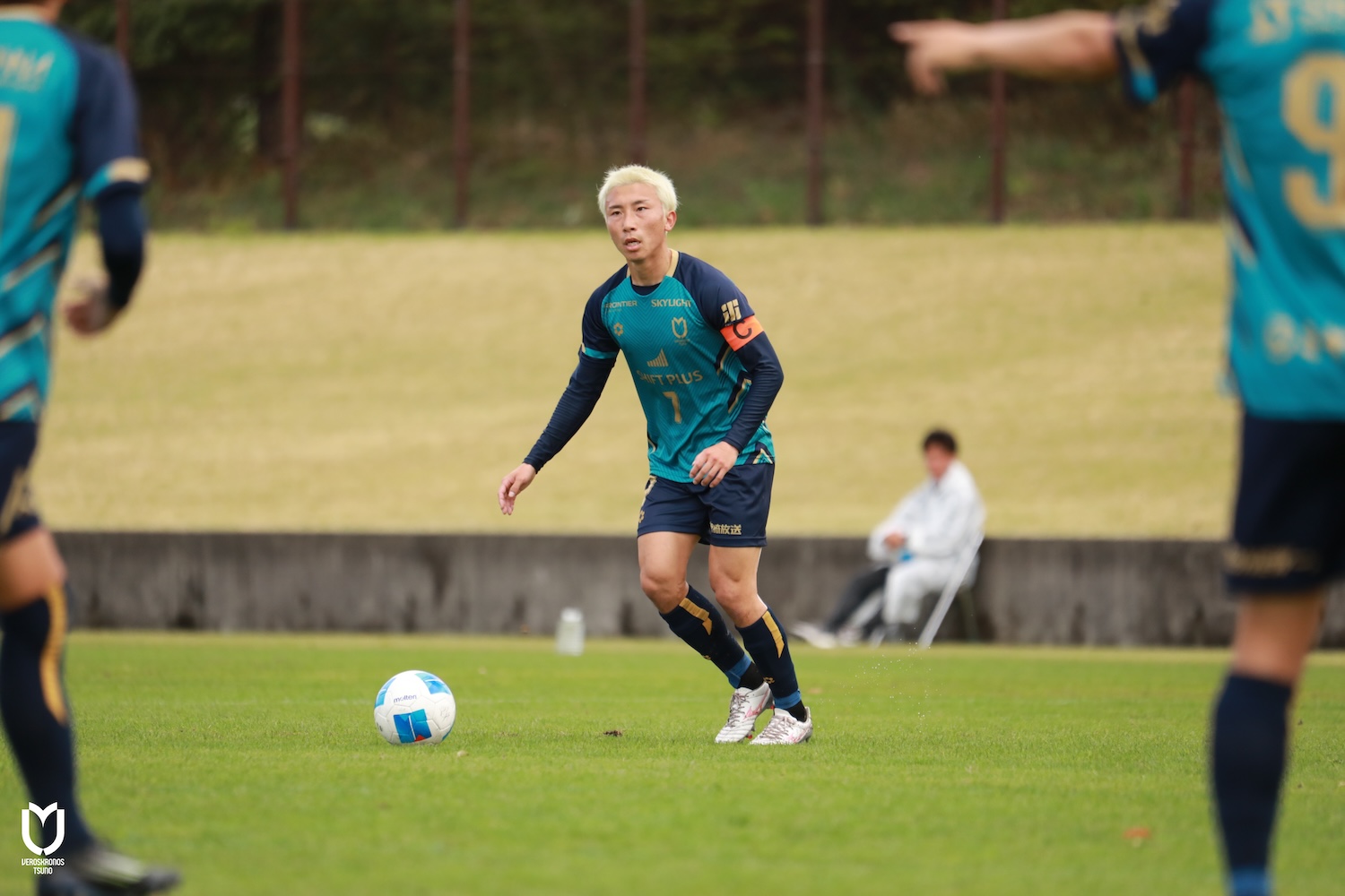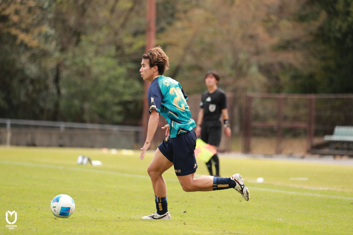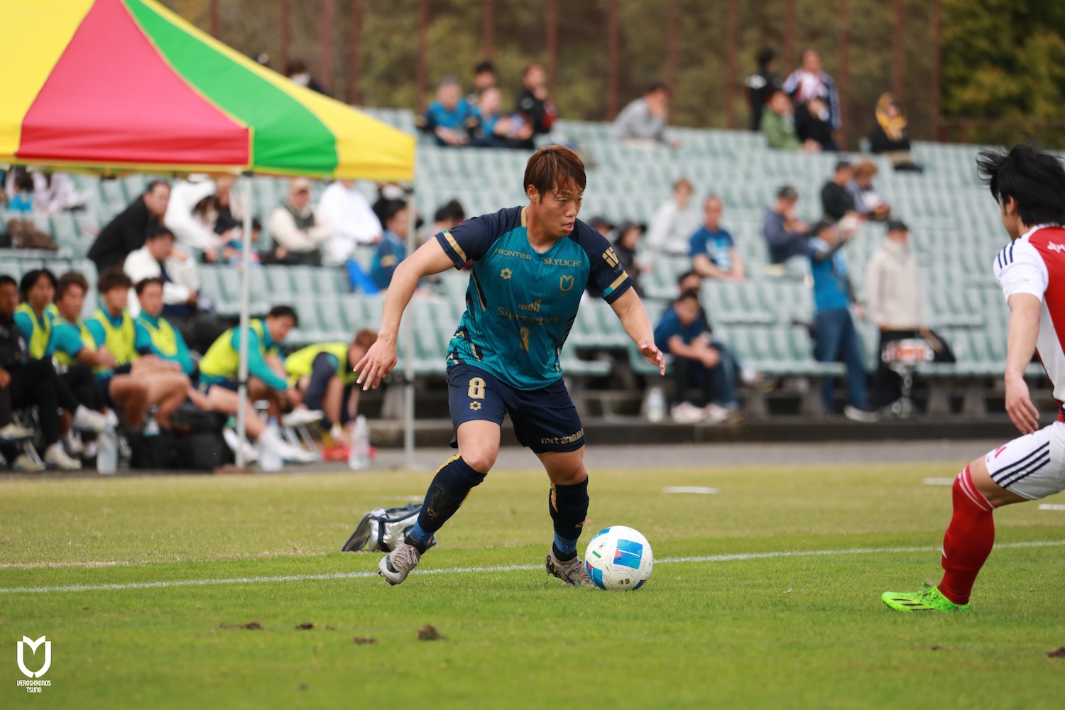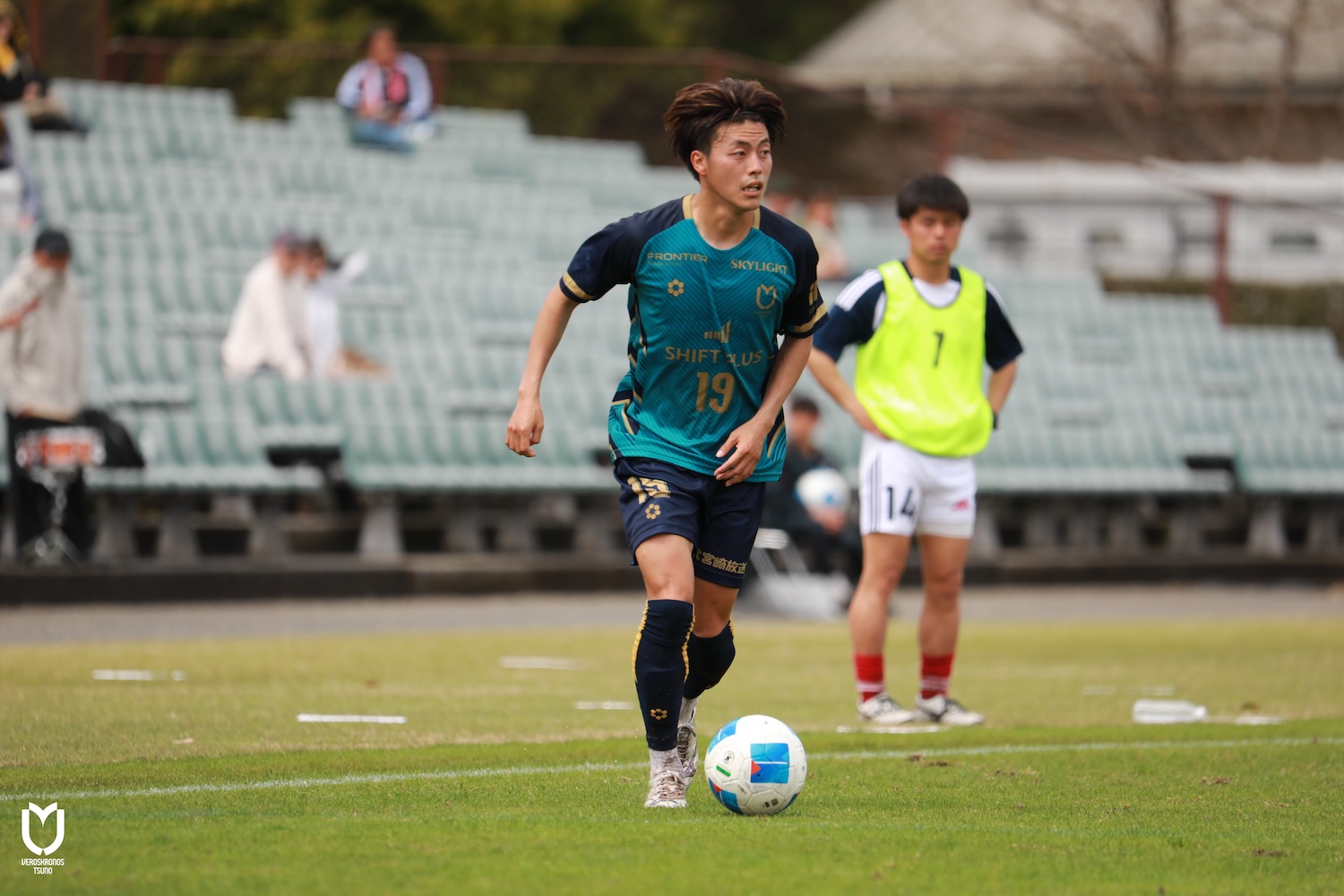 ヴェロスクロノス都農はDFの井上将弥選手、山田隼輔選手、ボランチ永野雄大選手が左右、上下へと出し入れ多くボールを動かし、序盤から自分たちの流れに持ち込みます。