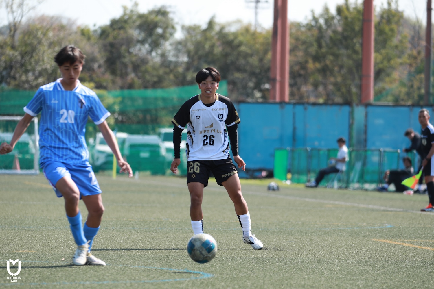 その後も手数の多い連続攻撃を繰り出し、次々と相手ゴールに迫りプレッシャーを掛けると共に素早い切り替えからの堅いディフェンス力も乱れることなく優位にゲームを進め、終盤には後半途中からピッチに立ったメンバーが躍動。38分にMF中村亮選手が中央のドリブル突破に成功し、右前に送ったスルーパスをFW高貝樹幹選手が間髪入れずに左サイドへと折り返し、走り込んだDF市川侑生選手が冷静に足を振り抜いてダメ押しの4ゴール目を奪いました。