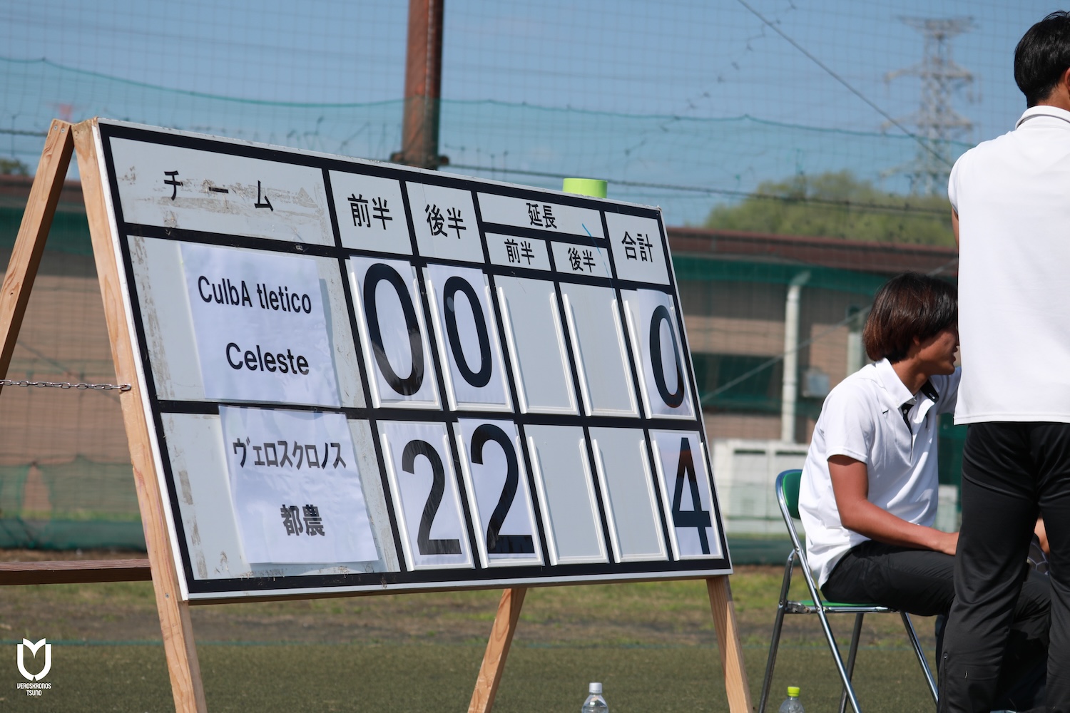 ヴェロスクロノス都農は序盤、相手の積極的なプレスと人数を掛ける守備に手を焼き、思うようにボールを繋げず一進一退の攻防に持ち込まれました。