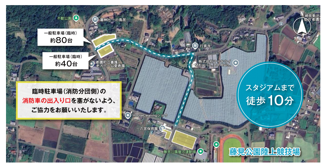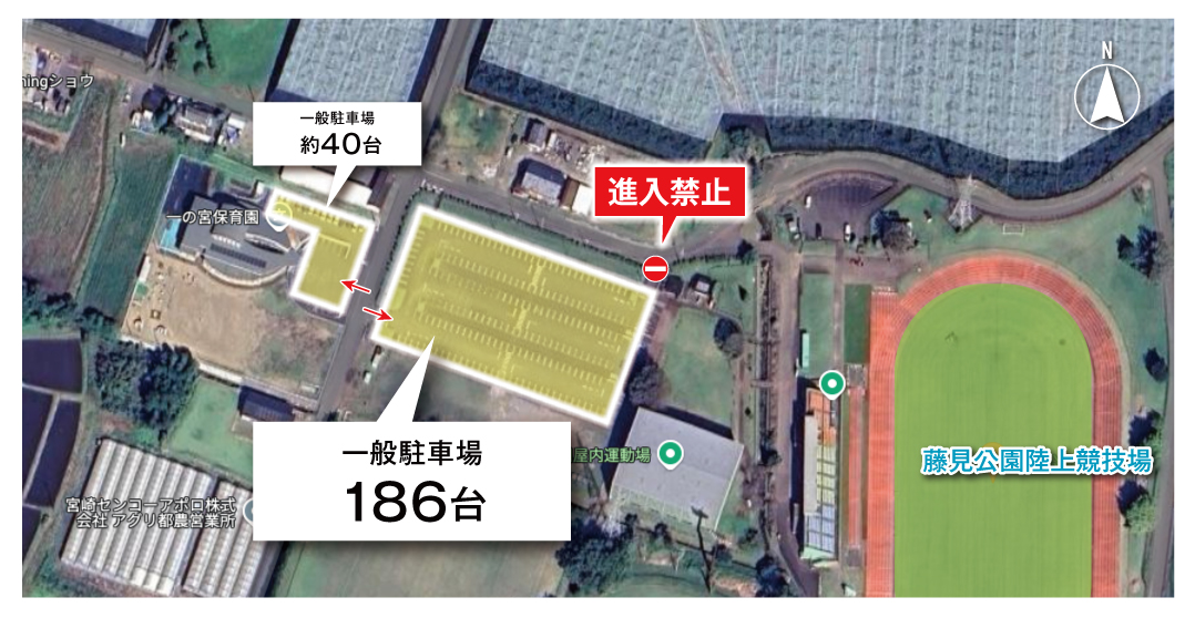 ・一般来場者の駐車場につきましては、指定の場所への駐車をお願いいたします。
