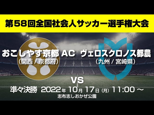 《ライブ配信》第58回全国社会人サッカー選手権大会準々決勝 ヴェロスクロノス都農vsおこしやす京都