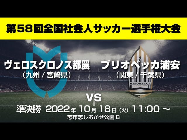 《ライブ配信》第58回全国社会人サッカー選手権大会 準決勝 ヴェロスクロノス都農vsブリオベッカ浦安
